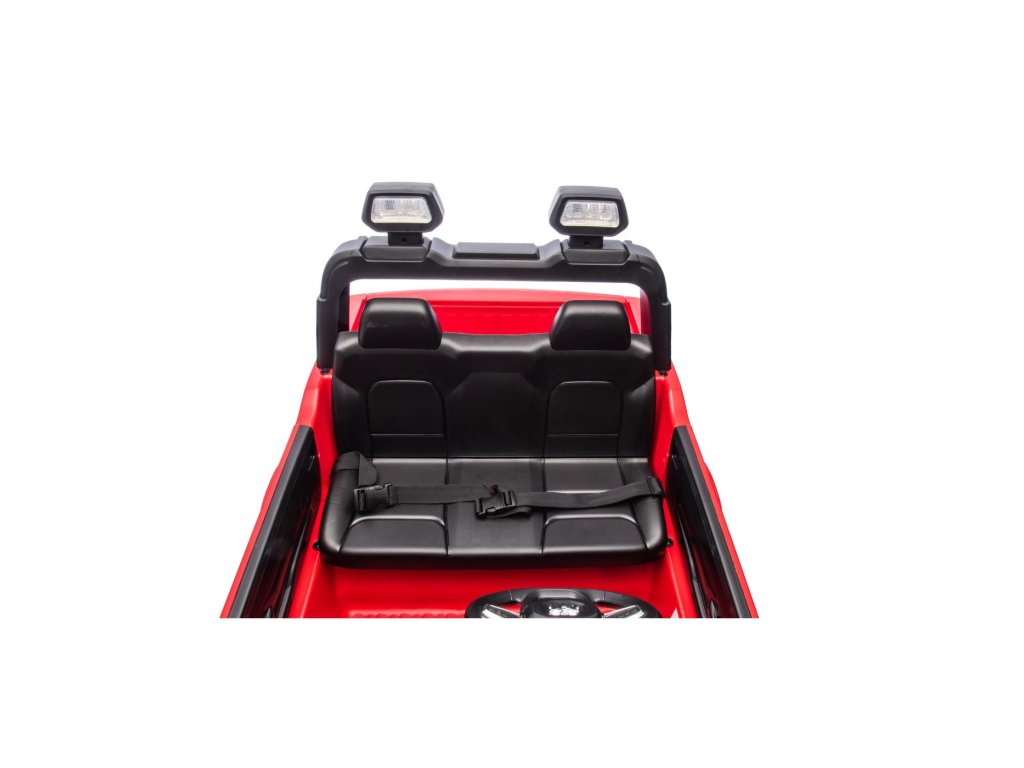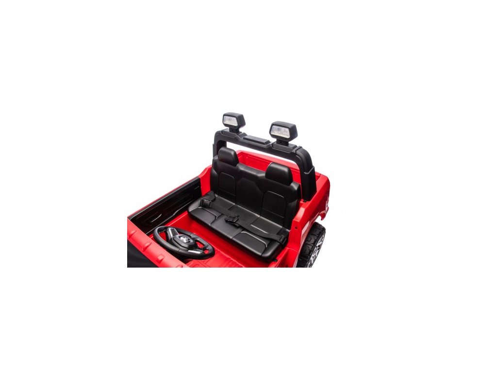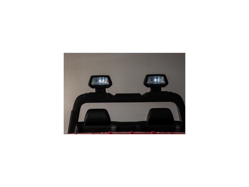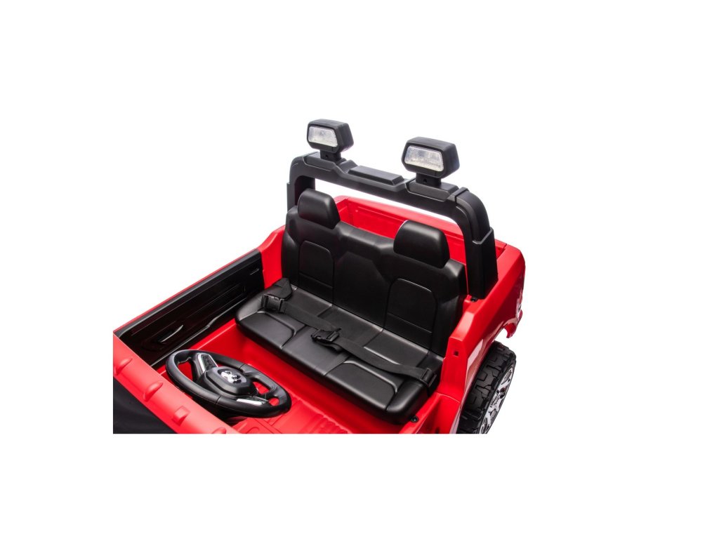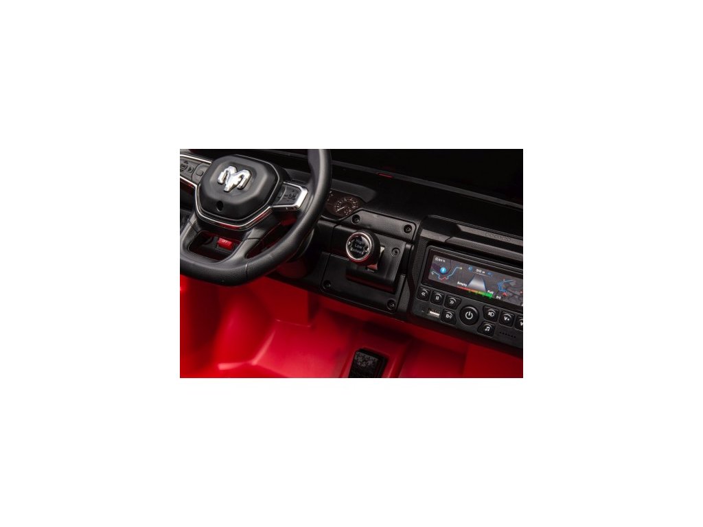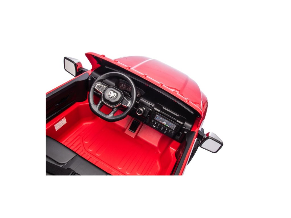 Električni automobil RAM 3500 ima dva motora ukupne snage 400 W i bateriju kapaciteta 24V/7Ah. Kotači od EVA pjene i sjedalo prekriveno eko kožom osiguravaju udobnu vožnju. Glazbena ploča s MP3 i USB-om zasigurno će vožnju učiniti ugodnijom za vaše dijete . Nosivost Igračka automobil teži 50 kg . Igračka automobil ima prednje i stražnje LED osvjetljenje i vrata koja se otvaraju.