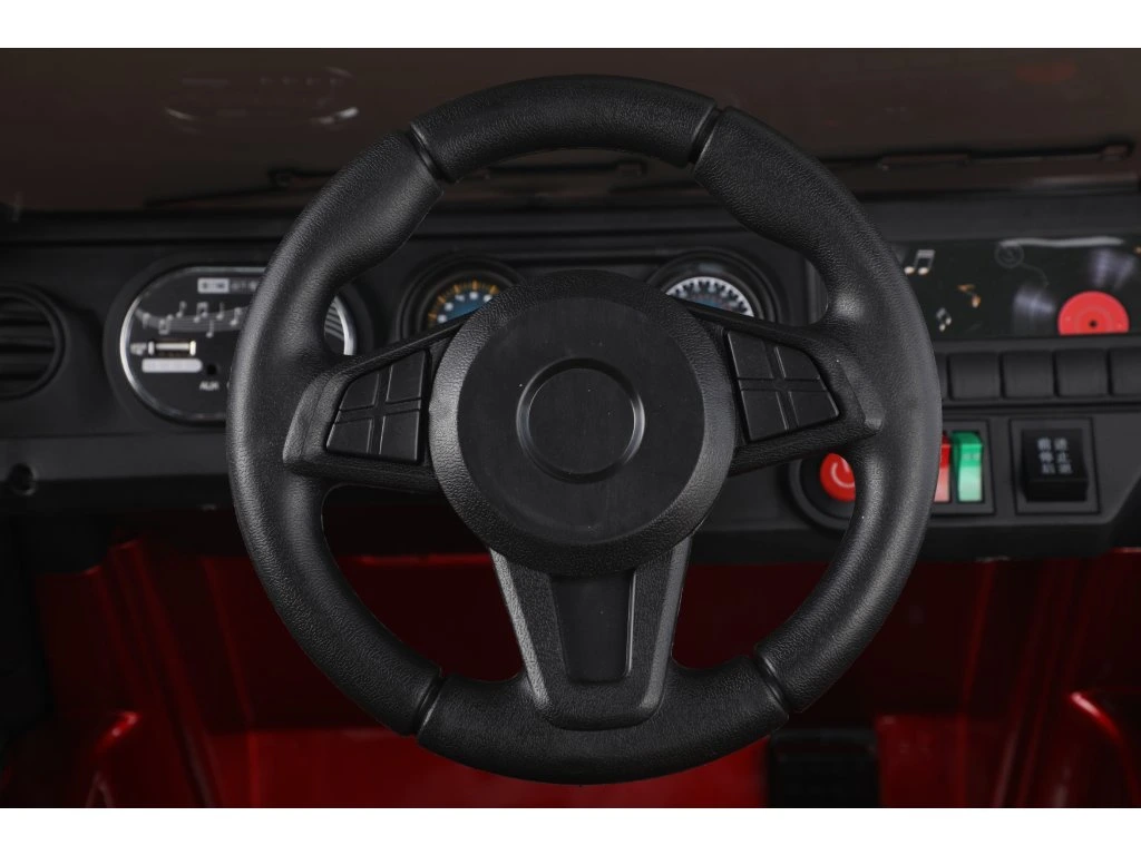 Dječji električni automobil dolazi na mekanim kotačima od EVA pjene koji su tihi i prilagođavaju se različitim vrstama terena. Dijete sjedi u udobno oblikovanom sjedalu od eko kože, a sigurnost je osigurana sigurnosnim pojasevima.