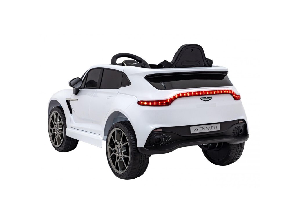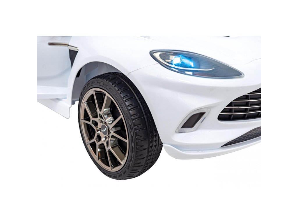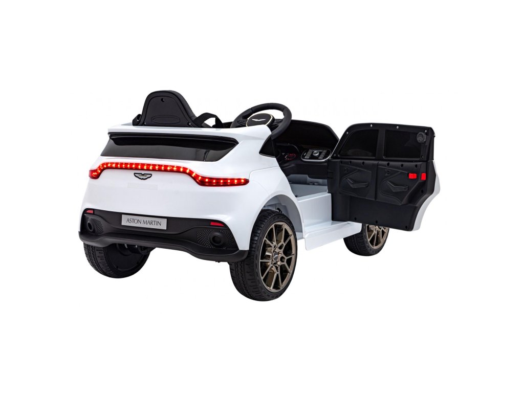 Električni automobil Aston Martin DBX ima četiri motora ukupne snage 100W i bateriju kapaciteta 12V i 7Ah. Kotači od EVA pjene i sjedalo presvučeno ekološkom kožom osiguravaju udobnu vožnju. Glazbena ploča s MP3-om, USB-om, Bluetoothom i radiom sigurno će učiniti vožnju ugodnijom za dijete . Nosivost autić je težak 30 kg . Auto igračka ima prednje i stražnje LED osvjetljenje i otvarajuća vrata.