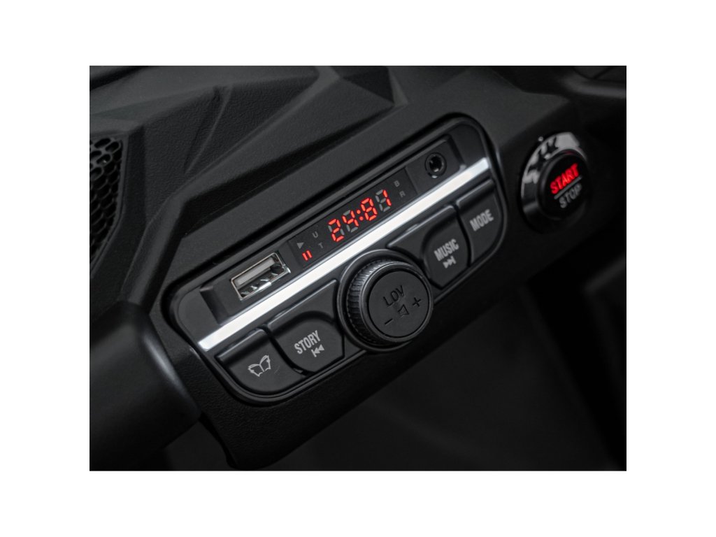 Električni Buggy automobil s moćnim motorima ukupne snage 800 W ne bi smio nedostajati ni u jednoj dječjoj garaži. Automobil napaja baterija kapaciteta 24 V 5 Ah . Maksimalno opterećenje vozila je 30 kg. Tijekom vožnje dijete će sigurno zanimati glazbena ploča s MP3, Bluetoothom, USB-om i radiom .