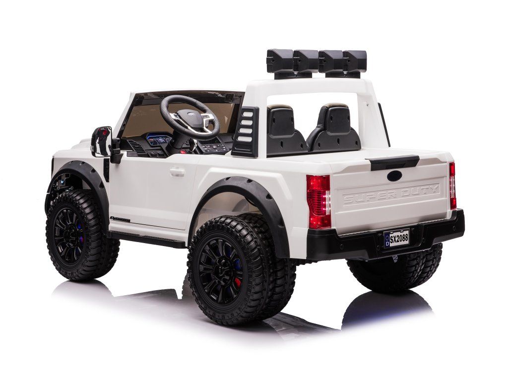 Dječji električni automobil licencirani je proizvod marke Ford. Električni automobil Ford Super Duty s četiri snažna elektromotora snage 45W i baterijom 12V 14Ah. Veliki pjenasti EVA kotači pobrinut će se za udobnu vožnju. Stražnji kotači su dvostruki, što pomaže automobilu da savlada teren i neravne površine.