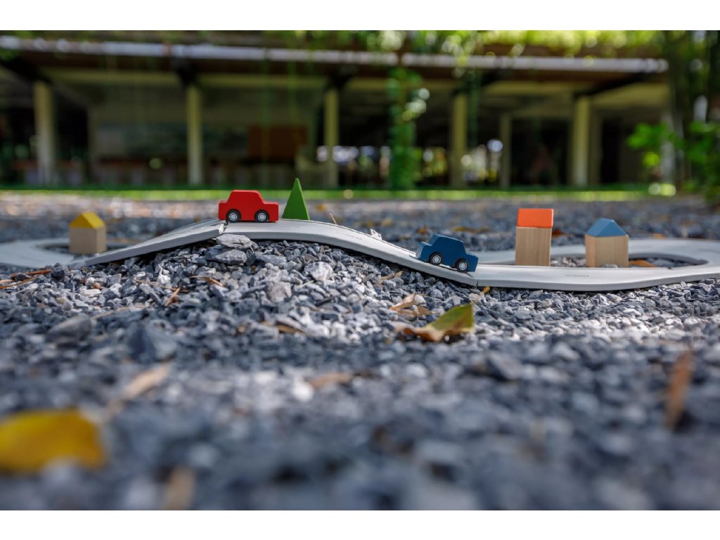 Univerzalni set za izgradnju autodraže i željezničke pruge, prikladan za dječje sobe i igraonice. Fleksibilni gumeni dijelovi omogućuju slaganje staze unutra i vani te potiču spretnost, maštu, logičko razmišljanje i koordinaciju djece.