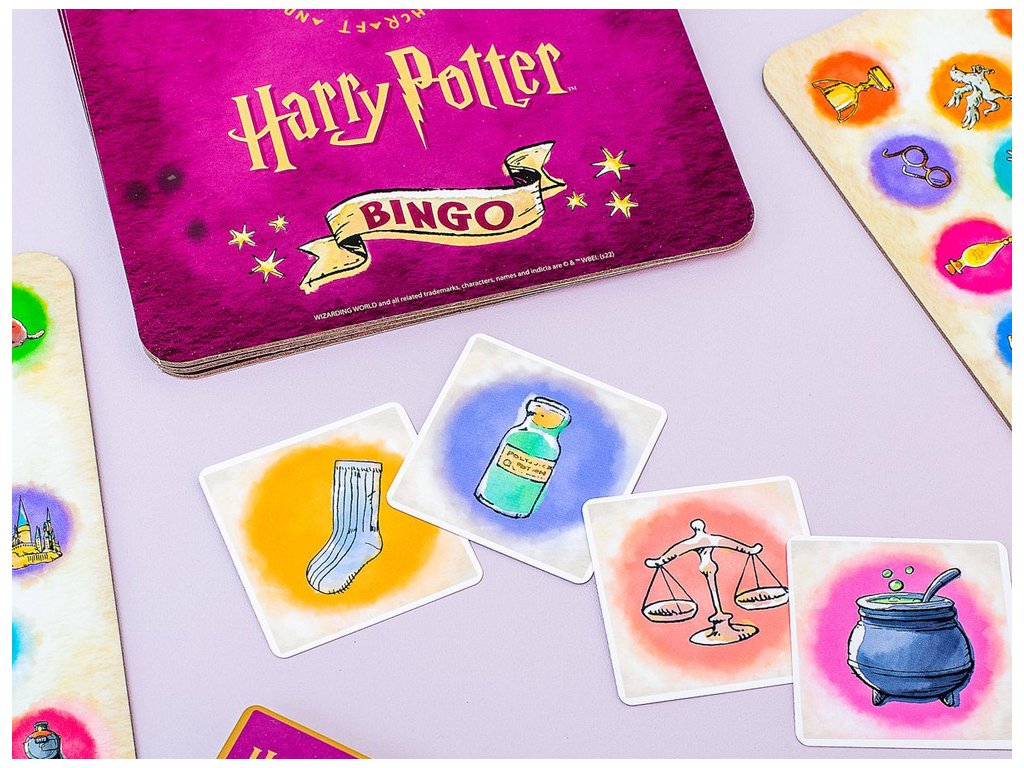 Čarobni Detalji: Na pločama i kartama naći ćete simpatične ilustracije kotlova, mandragora, maskota kuća Hogwarts, simbola Darova smrti i mnogih drugih čarobnih elemenata. Prikupi ove čarobne predmete i likove kako bi prvi ispunio svoju bingo ploču i pobijedio!