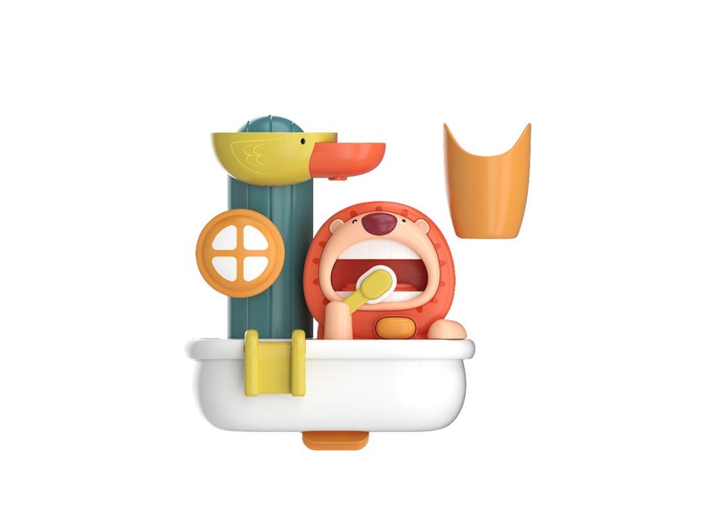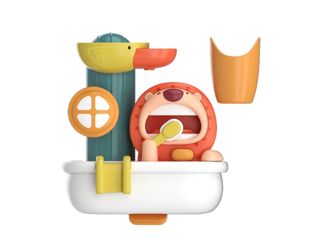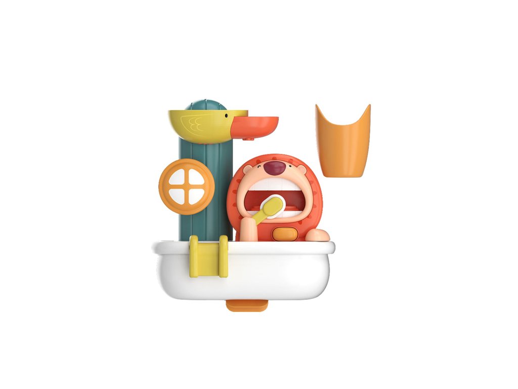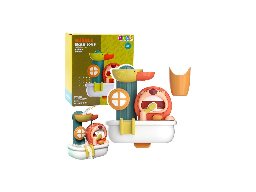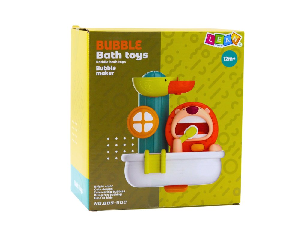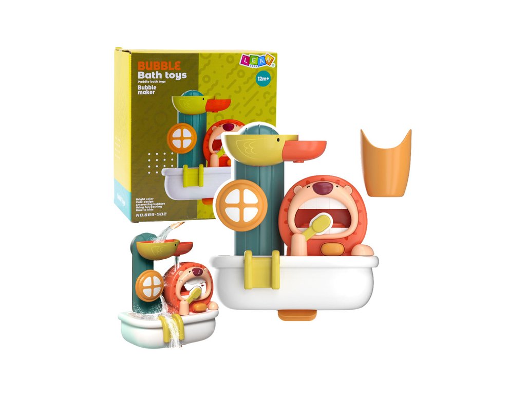 Ova interaktivna igračka za kupanje u obliku šarenog stroja za pjenu savršen je način da potaknute svakodnevnu higijenu vašeg djeteta i učinite vrijeme kupanja zabavnim. Veseli lav ispušta pjenu dok pere zube, a patka pokreće spektakularni vodeni tobogan. Igranje s vodom i pjenom potaknut će vaše dijete da poželi provoditi vrijeme u kadi i na zabavan način će ga naučiti osnovama higijene.
