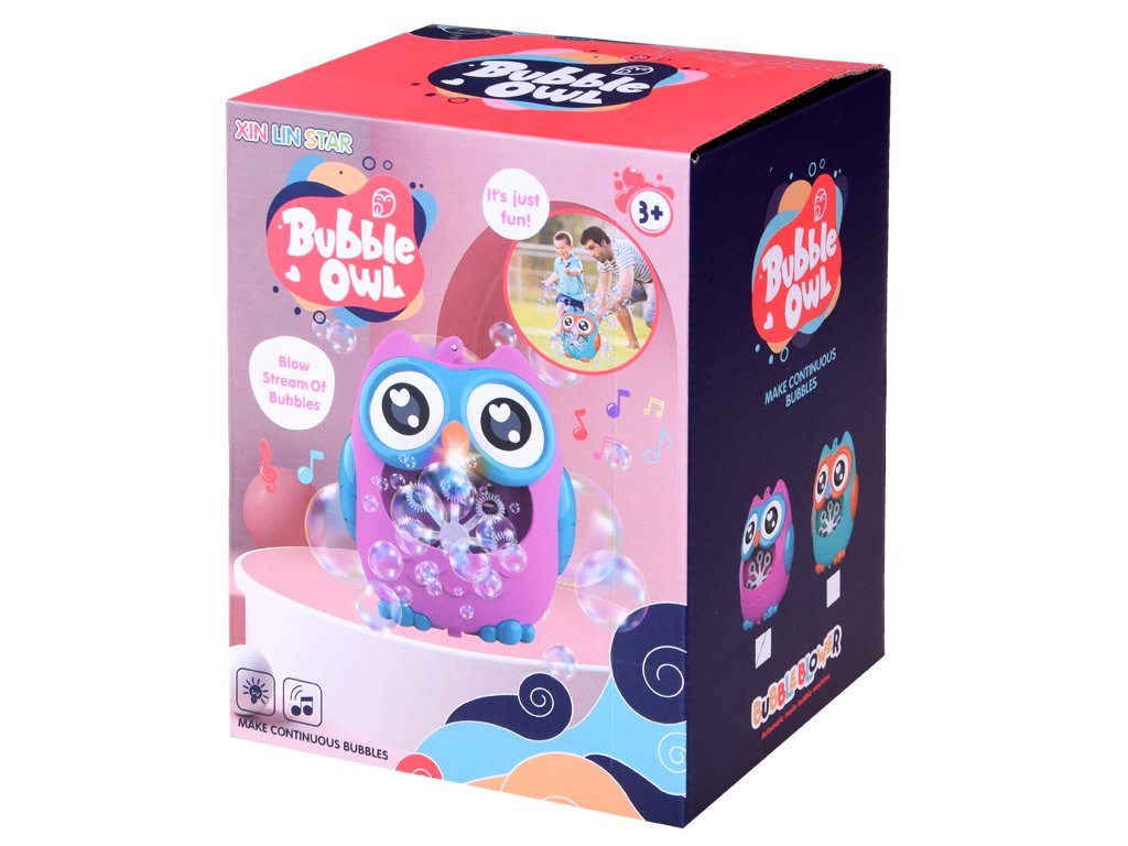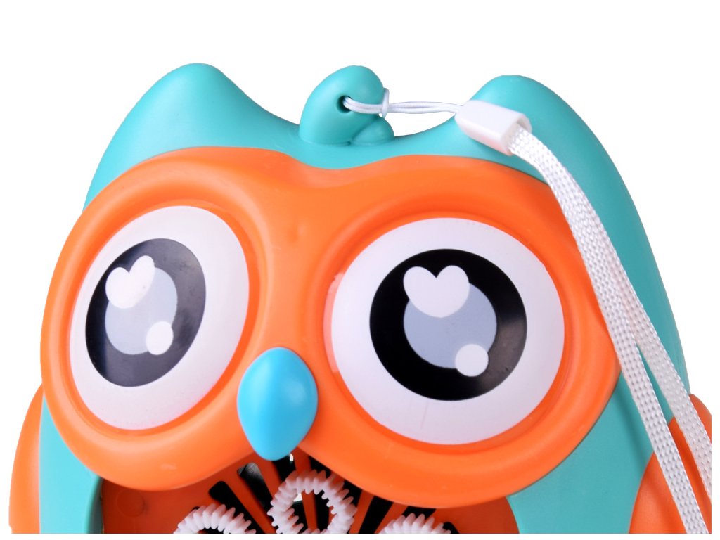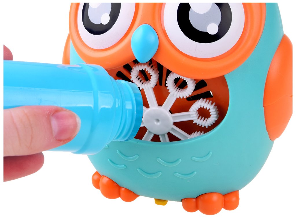 Igračka omogućuje automatsko ispuštanje šarenih mjehurića. Dovoljno je naliti tekućinu u otvor gdje se nalazi disk s prozorčićima, pritisnuti gumb smješten iza jednog sovinog uha, čime se pokreće ventilator i rotacija diska koji pri okretanju ispušta čarobne, duge mjehuriće. Ali to nije sve, iza drugog sovinog uha skriva se gumb s melodijom, čijim pritiskom počinje svirati vesela glazba. Kada se uključi, igračka svijetli crvenom bojom, što dodatno obogaćuje zabavu za našu djecu, posebno u mraku. Na vrhu glavice sove nalazi se traka zahvaljujući kojoj se uređaj za mjehuriće može objesiti gotovo bilo gdje.