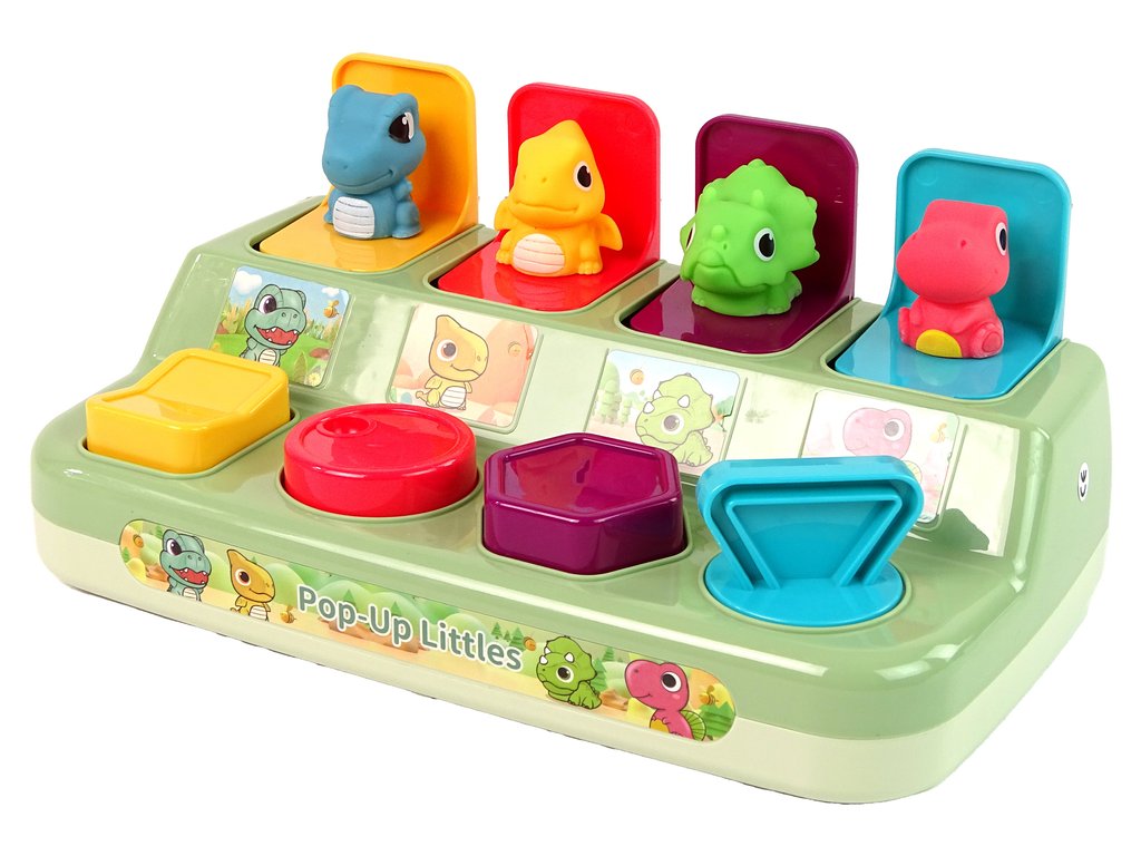Iskočna dječja igračka za razvijanje vještina podržava i manuelne i vizualne vještine. Dijete se u isto vrijeme igra i uči. Pritiskom ili rotiranjem zadanog oblika pojavit će se različiti dinosauri, omogućujući djeci da istražuju prirodni svijet dok uče prepoznavati.