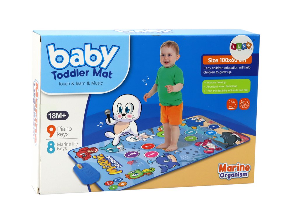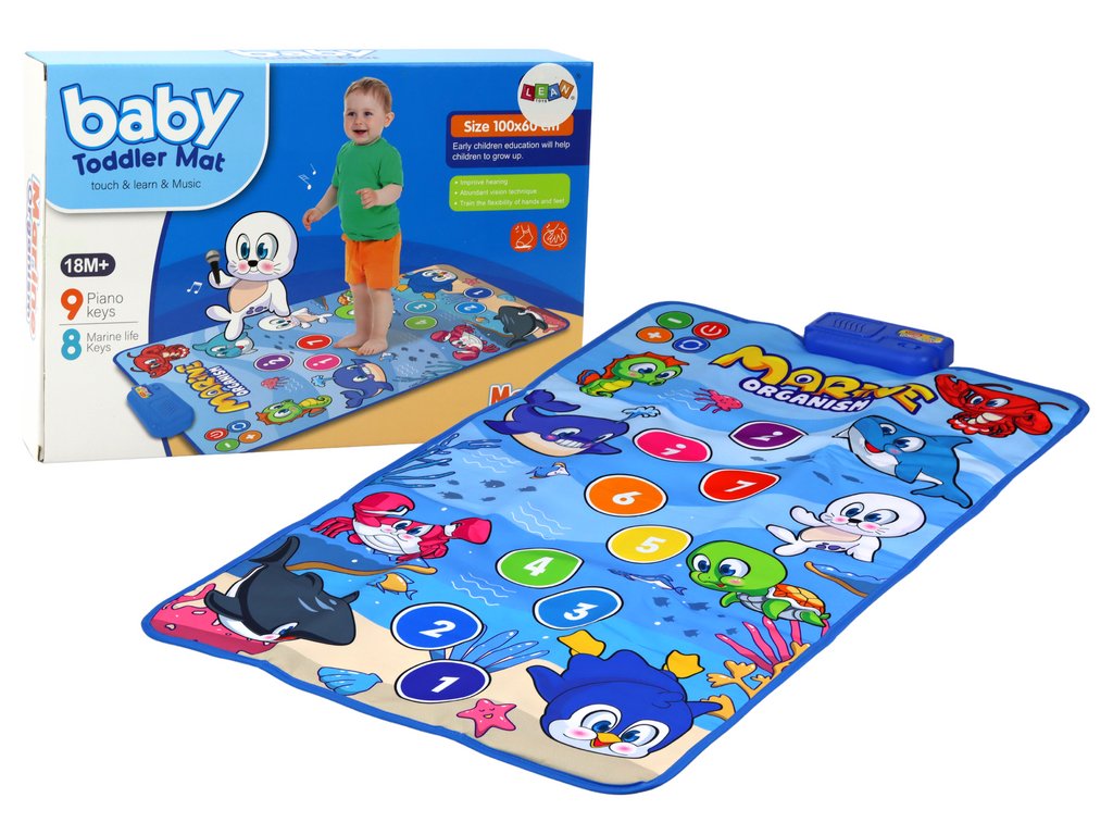 Površina plesne podloge ima 9 interaktivnih tipki koje, kada se pritisnu, pokreću razne zvučne efekte i melodije, potičući dijete na aktivnost i otkrivanje. Kada dijete pritisne jednu od životinjica, čut će zvukove koje ta podvodna životinja ispušta.