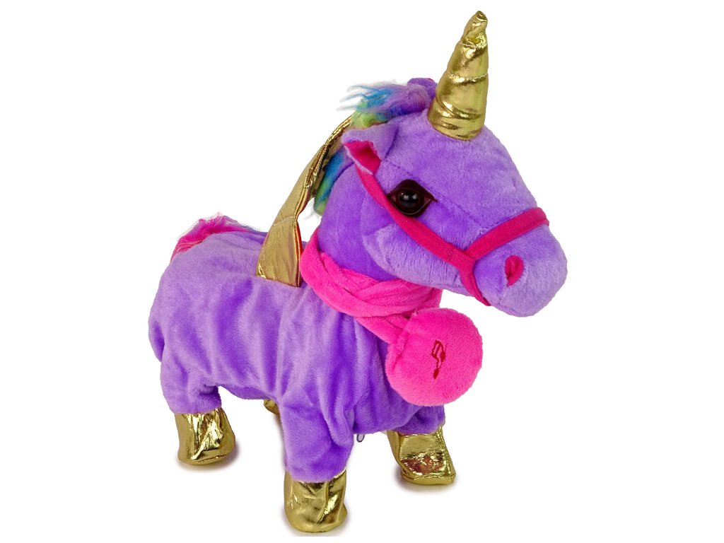Interaktivni jednorog izrađen je s najvećom pažnjom, ljubičaste je boje, mekan na dodir i ima zlatna krila. Jednorog rže i svira country melodiju. Nakon što umetnete baterije, samo pritisnite ručku povodca i jednorog će hodati, pomičući rep i glavu.