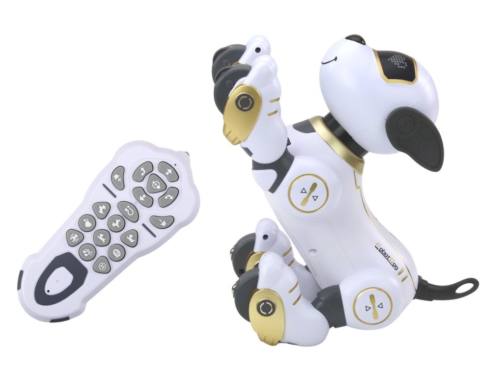 Interaktivni robotski pas s daljinskim upravljačem pleše i izvršava naredbe zlatni
