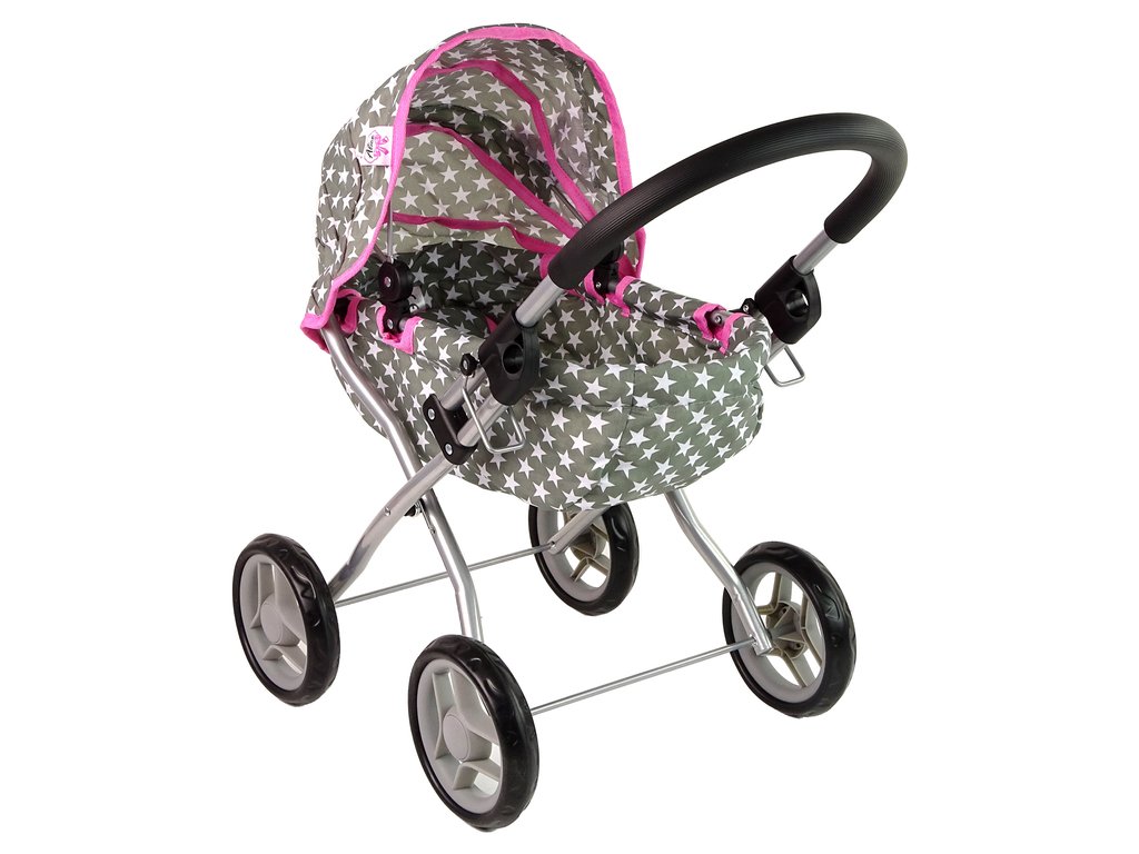 Crno-ružičasta kolica ukrašena su nježnim ružičastim točkicama, što im daje poseban šarm. Kolica će zasigurno privući pažnju i potaknuti igru svake male njegovateljice - to garantiraju dimenzije prilagođene prosječnoj visini nekoliko godina starih djevojčica, kao i dizajn inspiriran konstrukcijom stvarnih dječjih kolica. Kolica će biti prikladna za sve lutke i igračke maksimalne duljine 40 cm - veliki dimenzije korpe lako će primiti nekoliko igračaka.