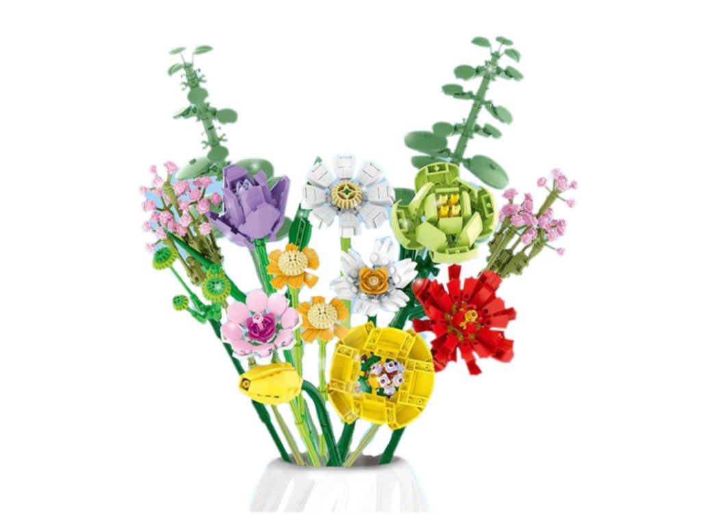 Šareni komplet za buket idealan je izbor za ljubitelje kreativnosti i dizajna. Sadrži 854 dijela od kojih možete sastaviti dvanaest različitih cvjetova i stvoriti impresivnu i prepoznatljivo šarenu kompoziciju. Buket će postati ne samo originalan ukras, već i nekonvencionalan poklon za svakoga tko cijeni estetiku i ručni rad.