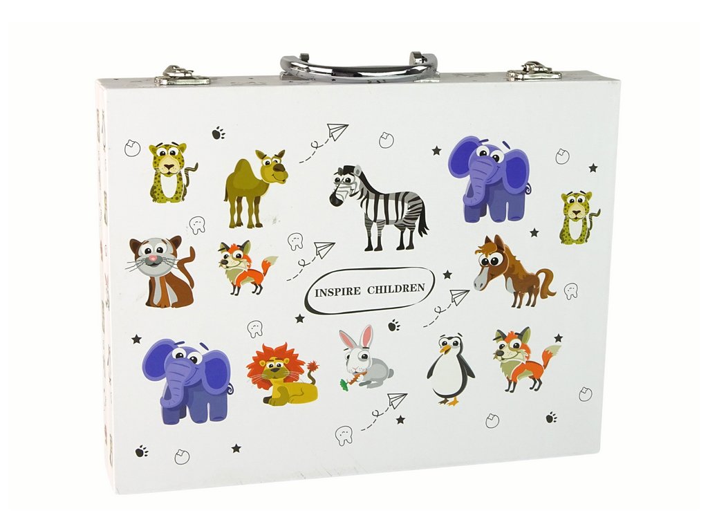 Ovaj umjetnički set u bijelom kovčegu s divnim životinjama idealan je poklon za male umjetnike koji žele otkrivati svijet umjetnosti i igre. Set malog umjetnika sadrži 68 dijelova kao što su pastele, boje i kistovi. Ovaj umjetnički set razvija kreativnost i maštu kod djece, potiče razvoj slikarskih i crtačkih vještina te ohrabruje eksperimentiranje bojama i tehnikama.
