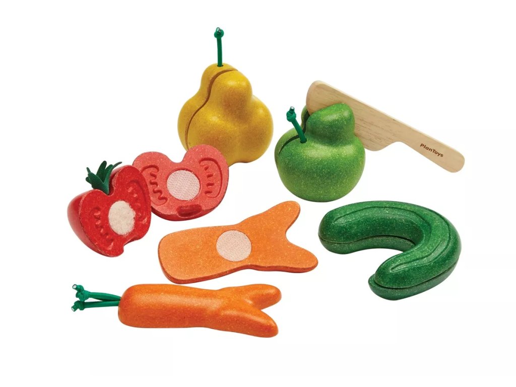 Prvo pogledajte kako ovo povrće i voće izgleda. Vidite li te zakrivljene oblike? Ova igračka uči djecu da nesavršeni oblici ne umanjuju vrijednost voća i povrća te tako pomaže u njegovanju osjetljivog pristupa hrani.