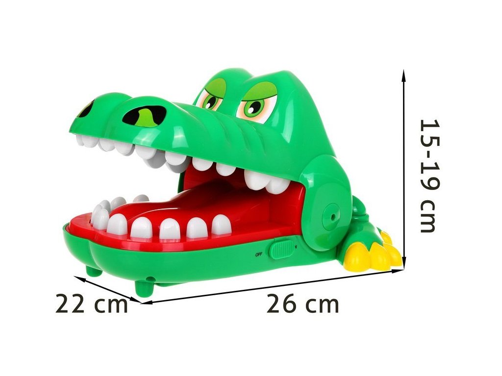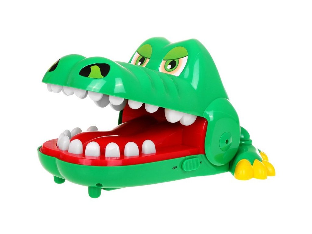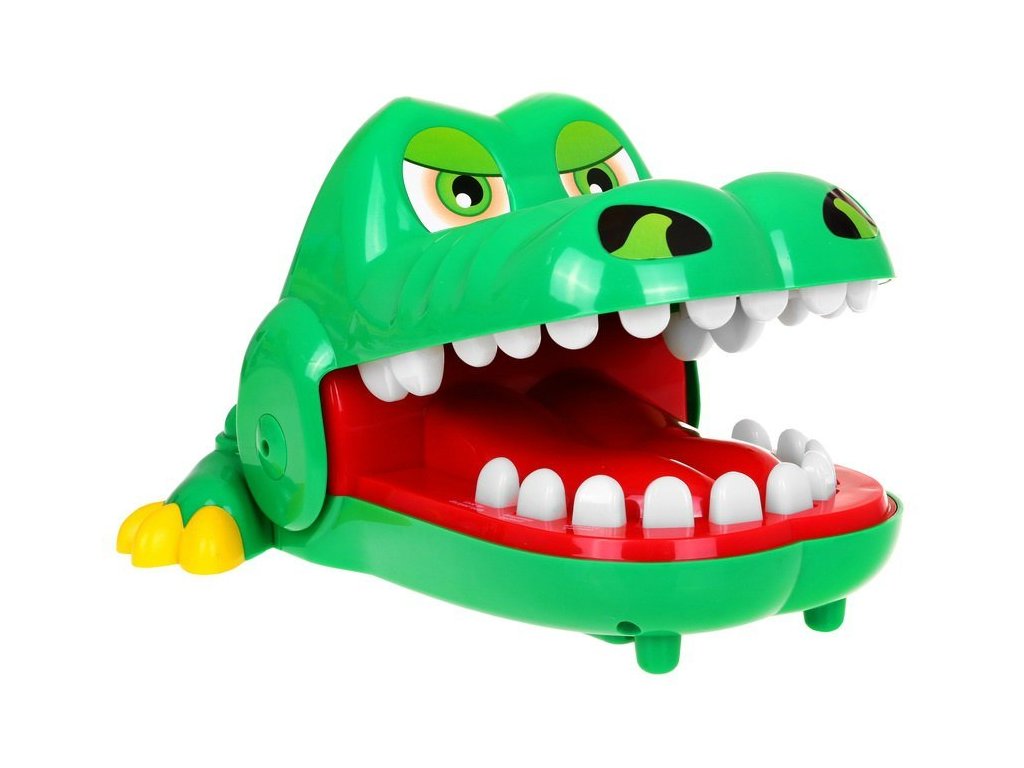 1. opcija "igra bolni zub": pritisnite crveni gumb - krokodil otvara čeljust i vaš zadatak je otkriti koji ga zub boli. Oprezno pritisnite zub za koji mislite da ga boli. Ako nije taj, pokušajte s drugim. Ako otkrijete bolni zub, krokodil će zatvoriti čeljust! To znači da ste izgubili.