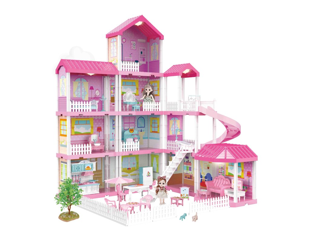 Velika ružičasta vila nudi djeci beskrajne mogućnosti za igru! Trokatna kućica visine 91 cm sa vrtom, terasom, sjenicom i spiralnim toboganom idealna je za kreativnu igru. Također uključuje 2 lutke i LED rasvjetu koja će cijeloj kućici dati čarobnu atmosferu.