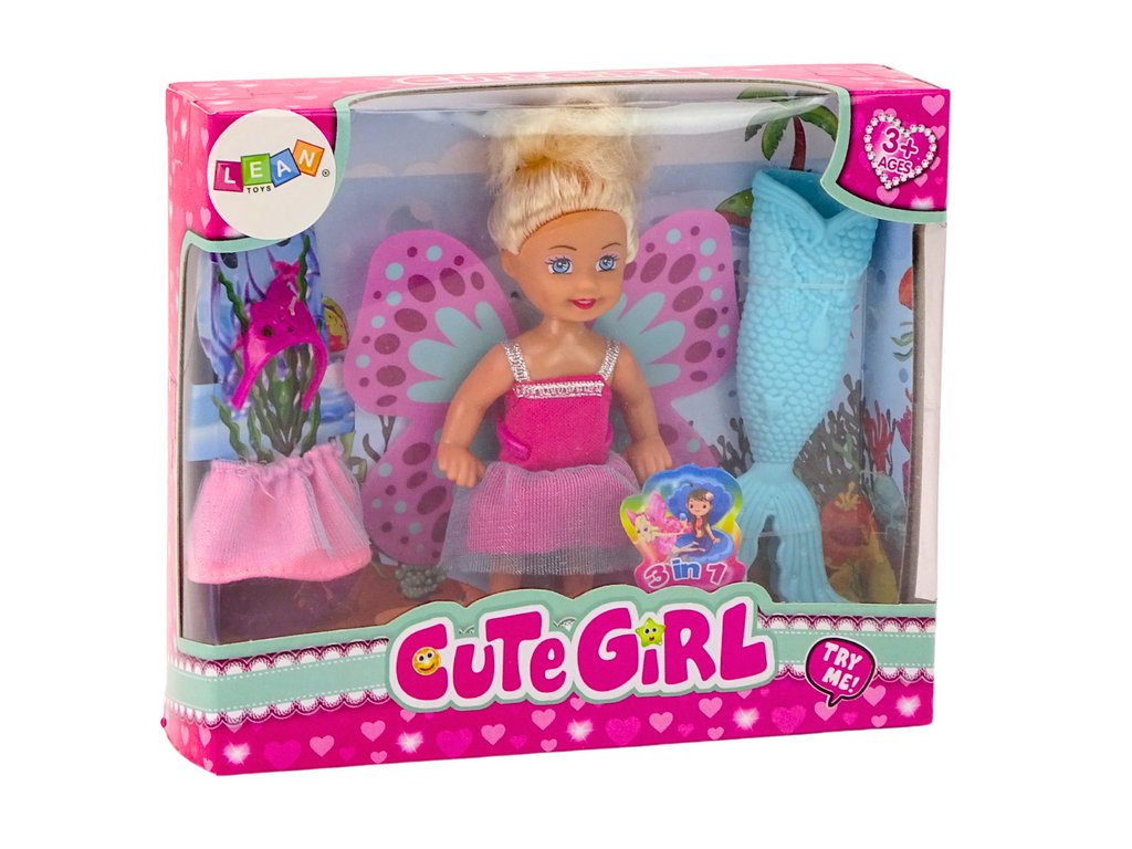 Set sadrži rep sirene, krila vile, dvije haljinice i krunu, omogućujući djetetu da svoju lutku prilagodi prema svojim željama. Rep sirene omogućava pretvaranje lutke u sirenu, a šarena krila u vilu, što dodaje novu dimenziju igri.