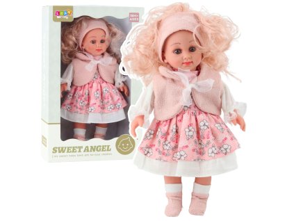 Lutka Sweet Angel u ružičastoj haljini s cvjetnim uzorkom i trakom za glavu 36 cm