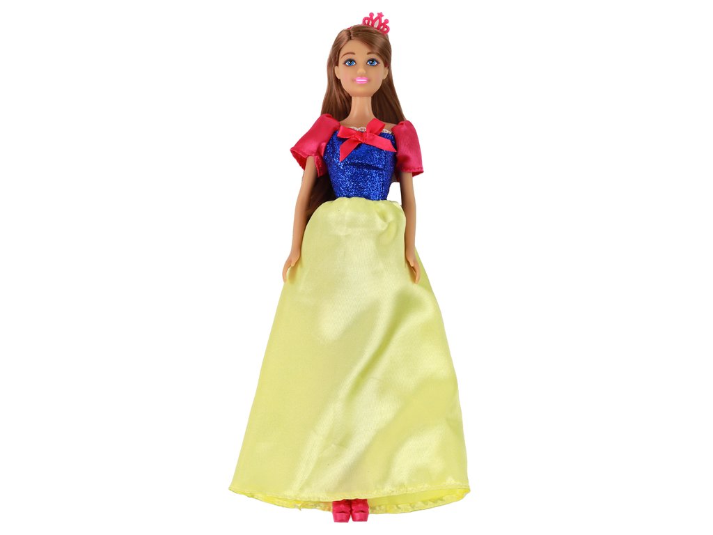 Lutka ima na glavi ružičastu krunu, a njezina odjeća je pravi modni dragulj. Gornji dio haljine je plav s ružičastim rukavima i mašnom, dok je donji dio elegantno gladak i žut. Ružičaste štikle dodaju cijelom outfitu eleganciju.
