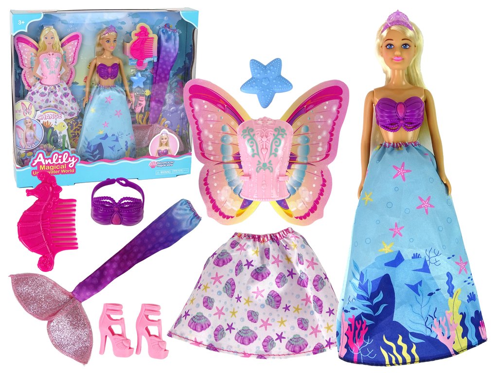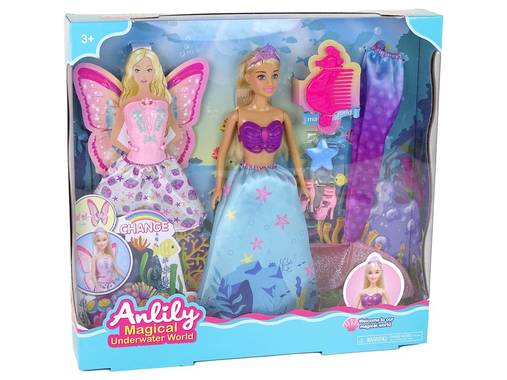Očaravajuća lutka Anlily pojavljuje se u različitim ulogama, zahvaljujući dodacima. Pretvorite je u princezu u prekrasnoj morskoj gala haljini, zatim u predivnu sirenu i na kraju u plavokosu morsku princezu.