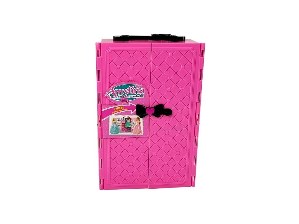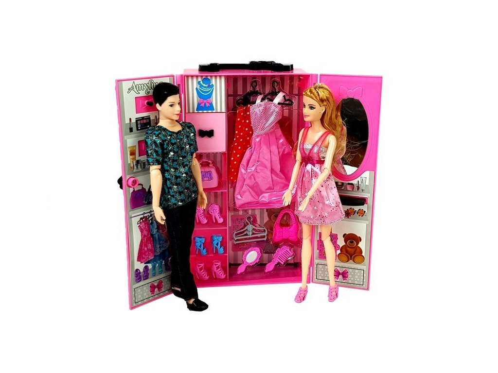 Voli li vaše dijete oblačiti svoju lutku? Set lutki s ormarom, koji je prenosiv, možete ponijeti bilo gdje sa sobom. Prekrasni ormar sadrži mnoge blaga koja će razveseliti malu djevojčicu. Unutar ormara nalazi se ogledalo s mjestom za crtanje, s druge strane je prostor za vješanje dodataka. Set uključuje i dvije lutke, dječak ima tamnu kratku kosu i tirkizno crnu majicu. Djevojčica ima prekrasnu ružičastu haljinu, a dodatnu odjeću za lutku pronaći ćete u ormaru.