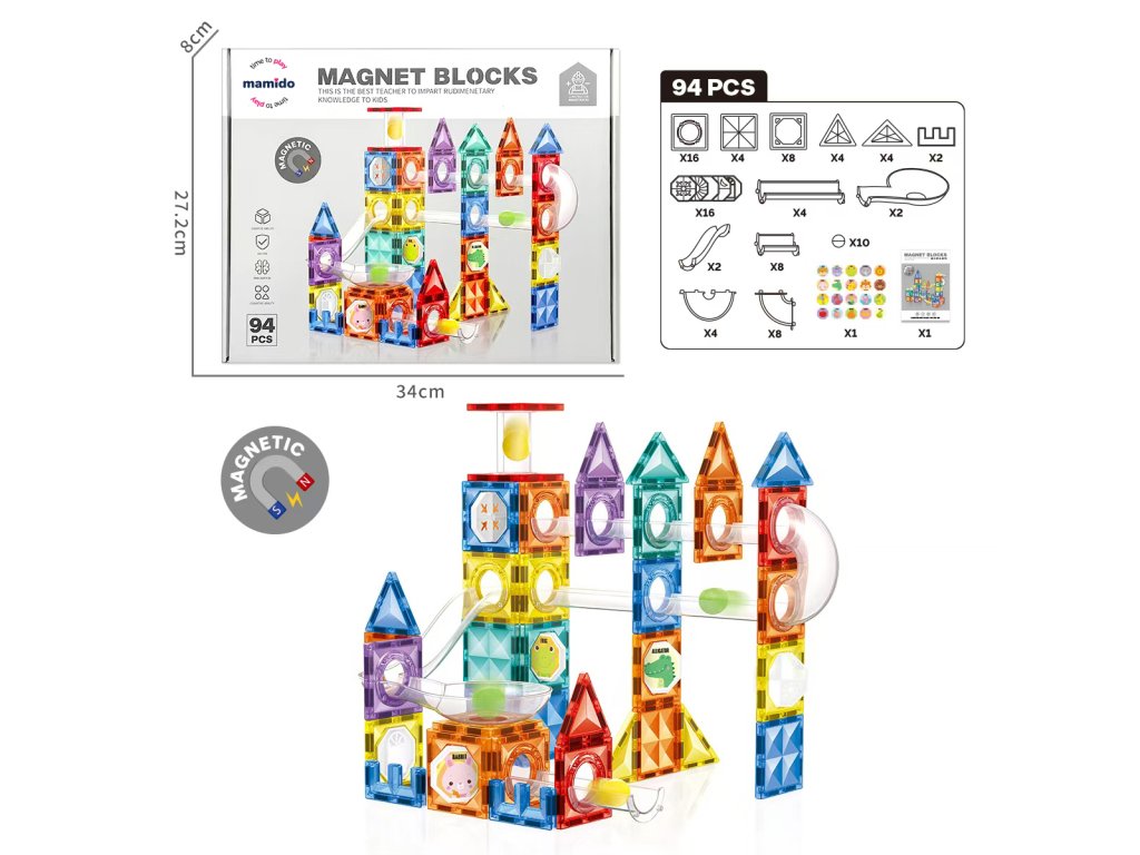 Kreativni magnetski set s 94 dijela donosi djeci sate zabave i mogucnost gradnje originalnih struktura i funkcionalnih staza za kuglice. Zahvaljujuci jakim magnetima, dijelovi se lako spajaju i omogucuju stvaranje stabilnih konstrukcija.