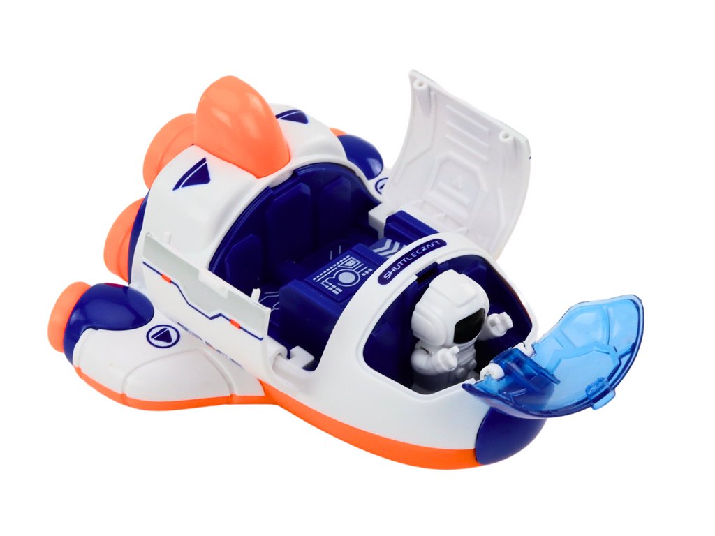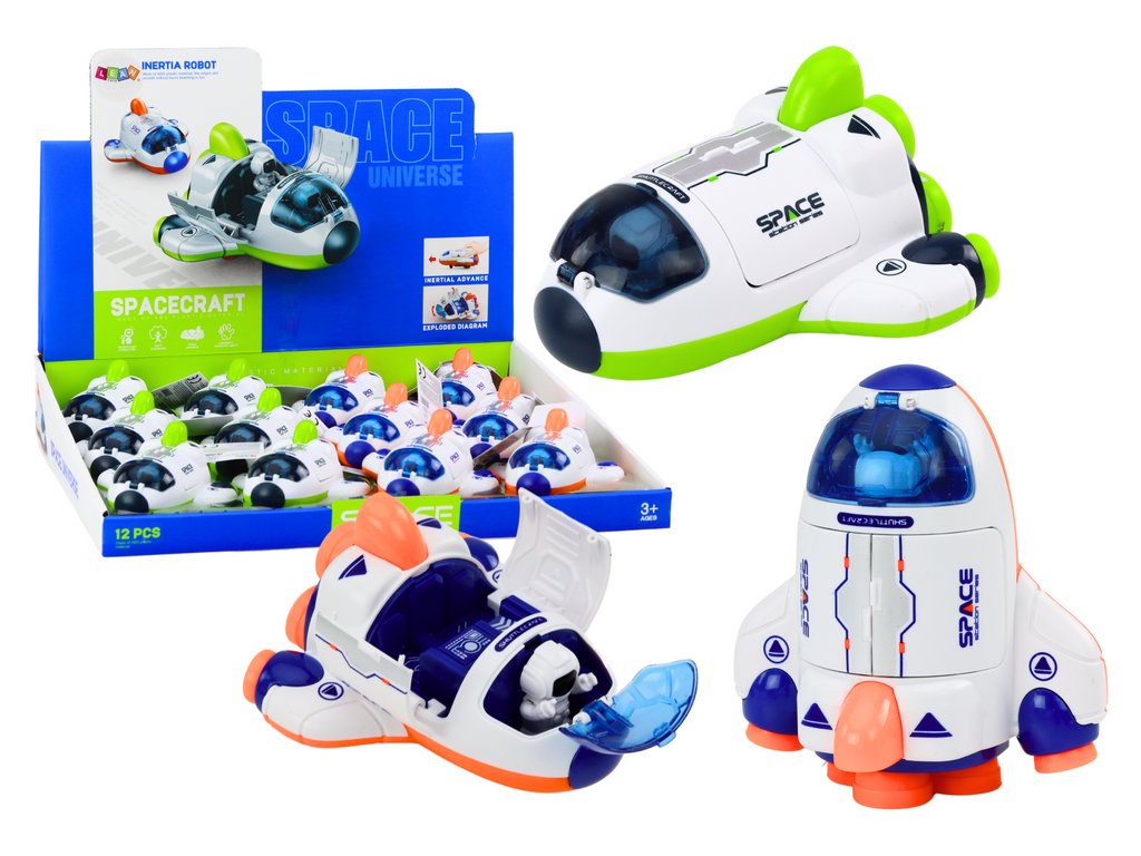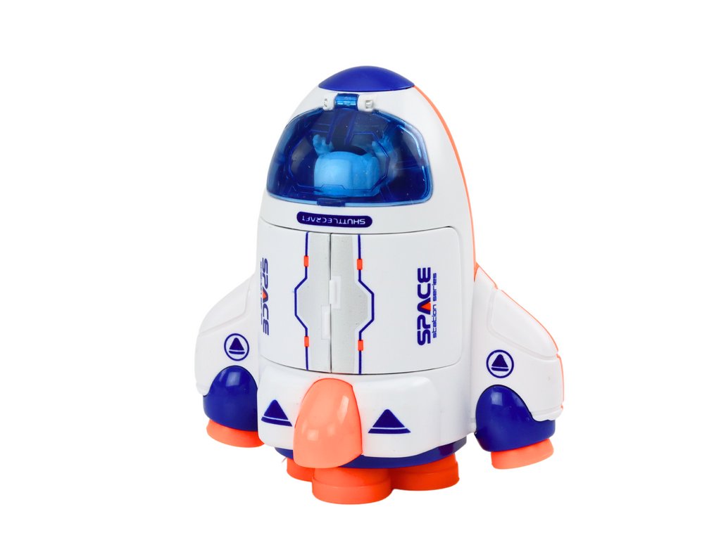 Svemirska letjelica opremljena je kotačima s pogonom, što znači da nakon pritiska dinamično kreće naprijed. Ovo rješenje omogućuje djeci aktivnu igru i simulaciju pravih svemirskih misija, donoseći mnogo radosti i uzbuđenja.