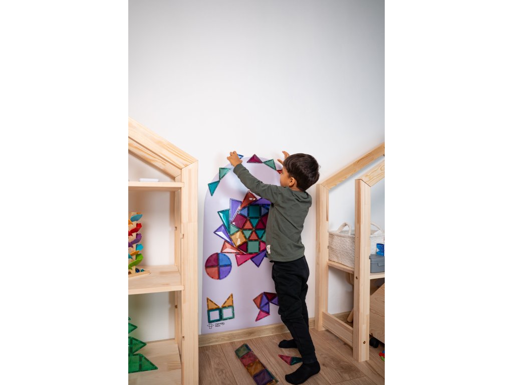 Magnetska tapeta Mamido Tiles donijet će djeci još više zabave, kreativnosti i učenja zahvaljujući magnetskoj snazi i jednostavnoj instalaciji. Jednostavno je zalijepite na glatki zid i u trenu će nastati interaktivni prostor za magnete, crtanje kredom, bojanje perivim bojama i pisanje flomasterom po ploči.