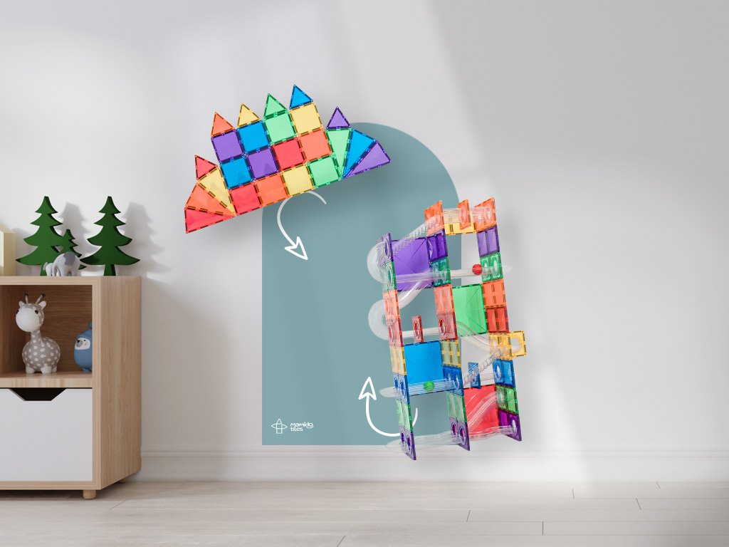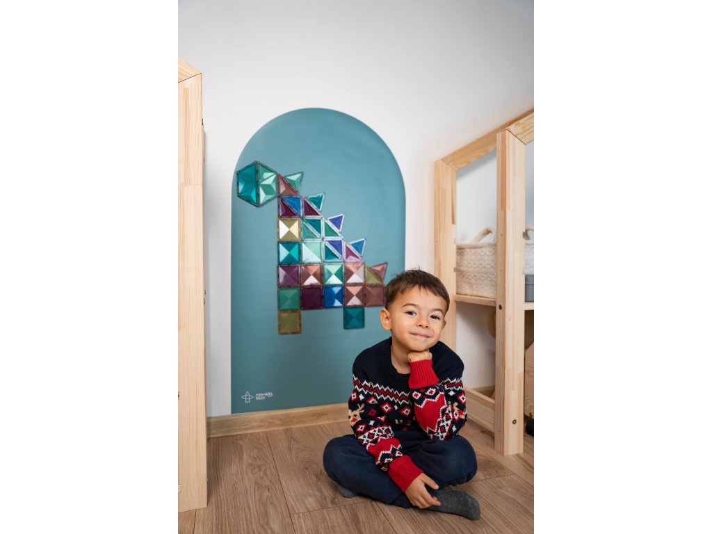 Magnetska tapeta Mamido Tiles donijet će djeci još više zabave, kreativnosti i učenja zahvaljujući magnetskoj snazi i jednostavnoj instalaciji. Jednostavno je zalijepite na glatki zid i u trenu će nastati interaktivni prostor za magnete, crtanje kredom, bojanje perivim bojama i pisanje flomasterom po ploči.