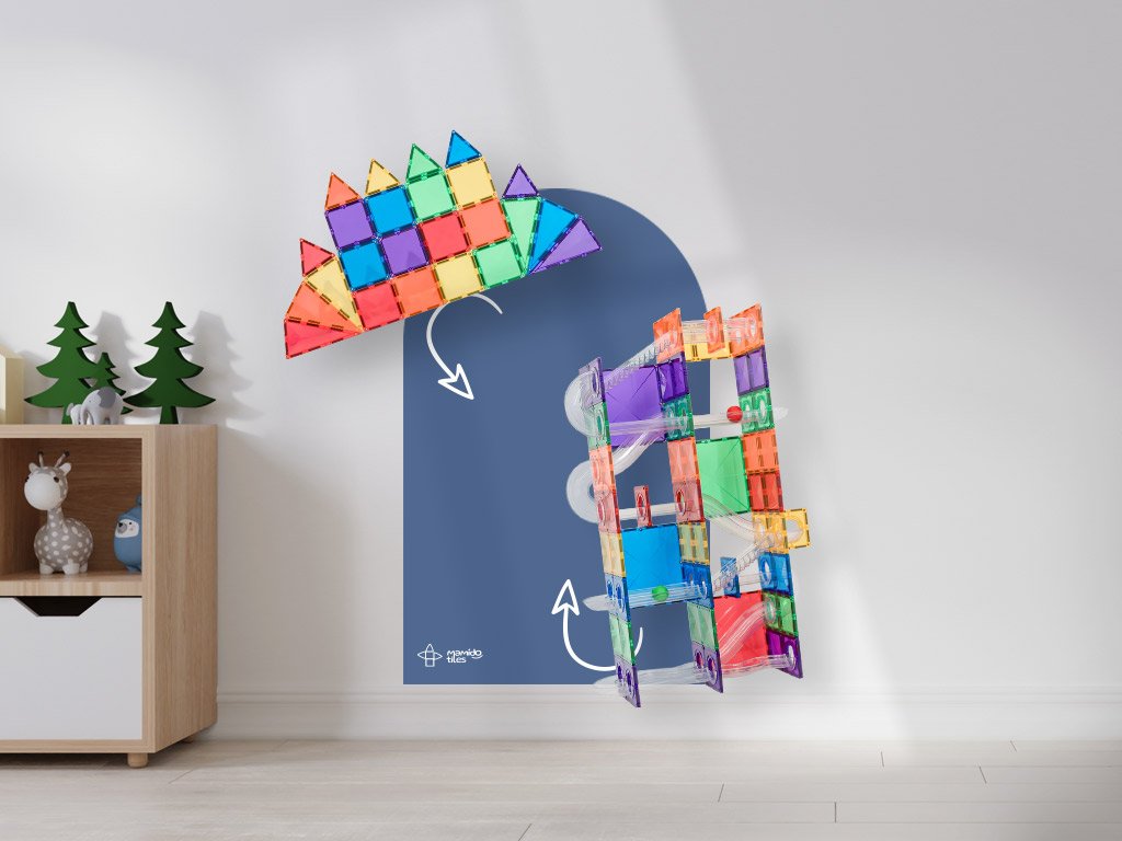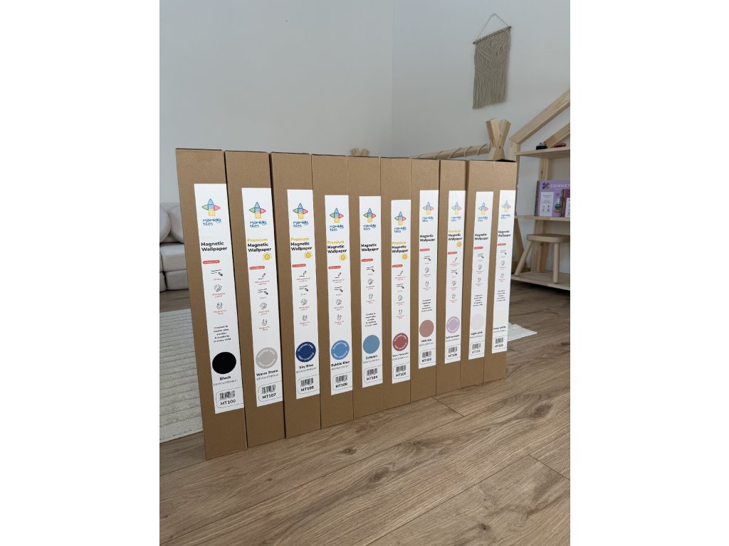 Magnetska tapeta Mamido Tiles donijet će djeci još više zabave, kreativnosti i učenja zahvaljujući magnetskoj snazi i jednostavnoj instalaciji. Jednostavno je zalijepite na glatki zid i u trenu će nastati interaktivni prostor za magnete, crtanje kredom, bojanje perivim bojama i pisanje flomasterom po ploči.