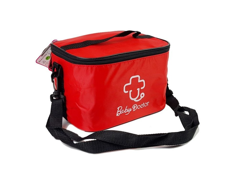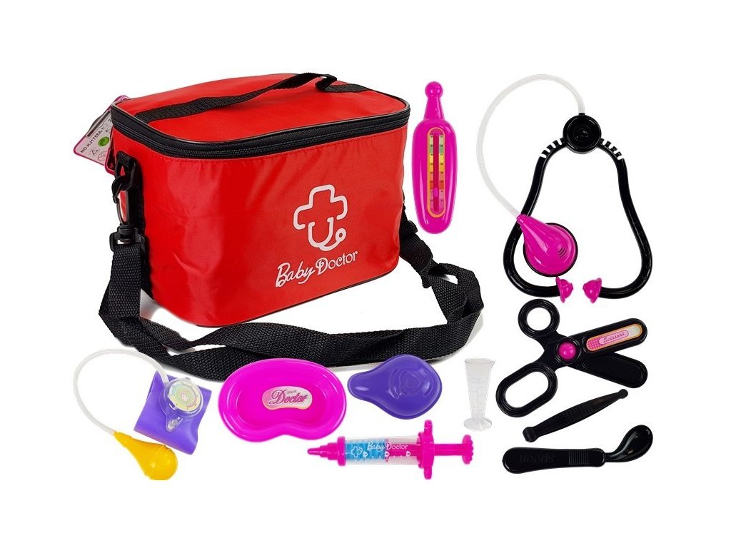Medicinski set u torbi, koji možete nositi preko ramena i hitno priskočiti u pomoć. Idealna igračka za svako dijete koje želi istraživati svijet oko sebe i u budućnosti postati liječnik.