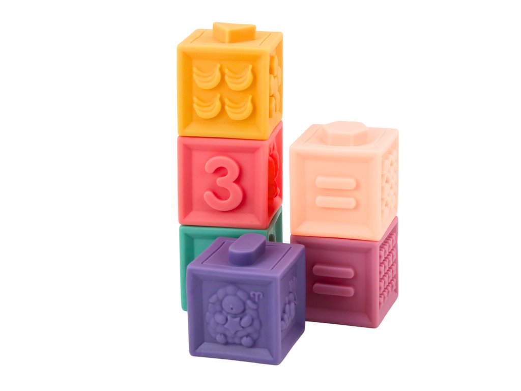 Meki edukativni blokovi su napredni set, kreiran imajući na umu svestrani razvoj djece. Set se sastoji od 12 šarenih gumenih kocki koje ne samo da privlače pažnju, već i angažiraju djetetova taktilna osjetila.