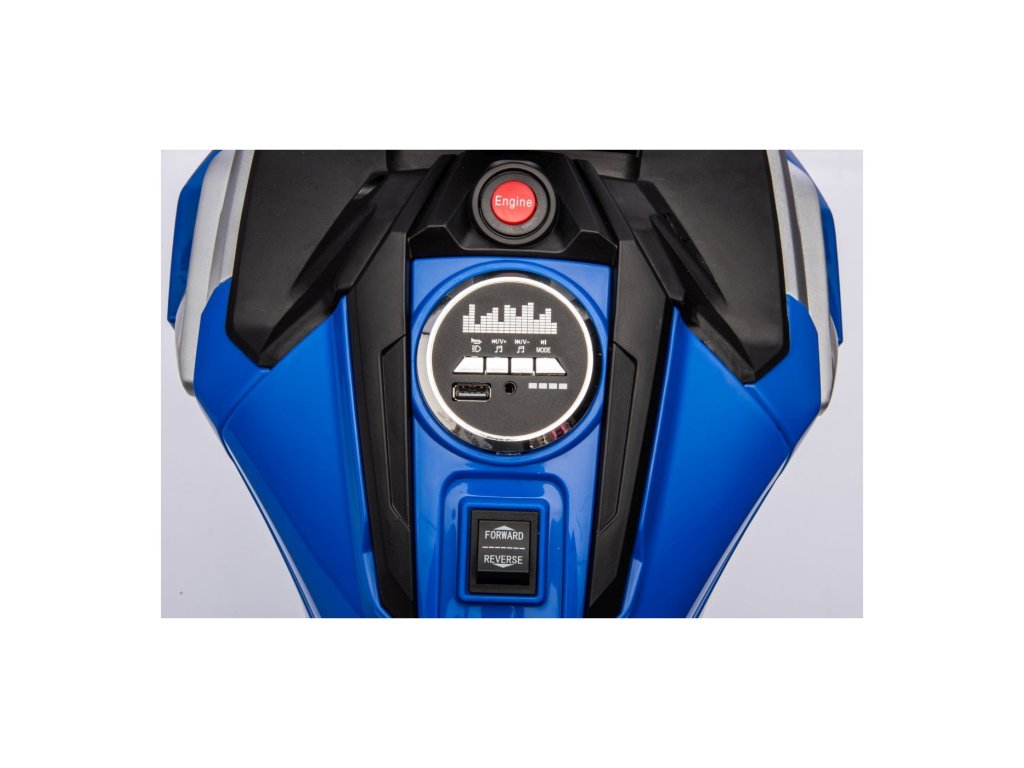 Dječji električni motor ima plastične kotače s gumenim rubom i motor snage 70W. Među opremom su prednja LED svjetla i glazbena ploča s Bluetoothom, AUX, MP3, USB i unaprijed snimljenim melodijama.