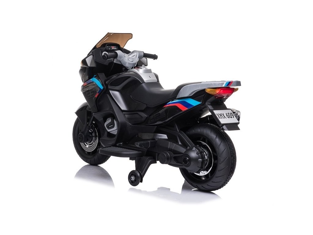 Dječji električni motor XMX609 je sjajan dodatak za obitelji s djecom za šetnju ili boravak u vrtu. Električni motor za male trkače izrađen je od kvalitetne tvrde plastike. Zahvaljujući vožnji na dječjem motoru, dijete razvija svoje vozačke sposobnosti i ravnotežu. Motor se vozi naprijed i natrag, a opremljen je ergonomskim sjedalom koje osigurava udobnost djeteta. Motor omogućava vožnju oko sat vremena bez punjenja. Punjač za motor je uključen u pakiranje. Motor je namijenjen za djecu od 3 godine te je opremljen LED svjetlima kako bi bilo vidljivo i u sumrak, jer će na ovom dječjem motoru htjeti provesti sate. Motor vozi brzinom od 3 do 7 km/h. Motor posjeduje europski certifikat sigurnosti CE.