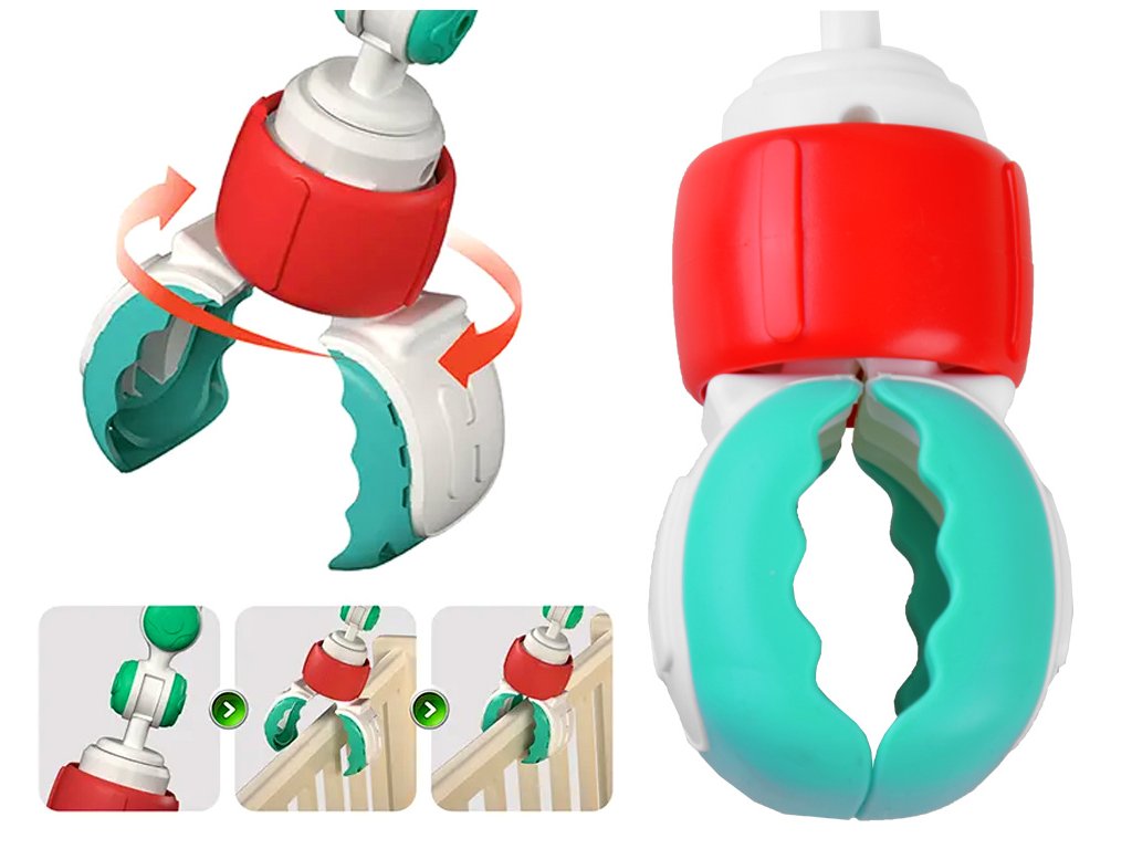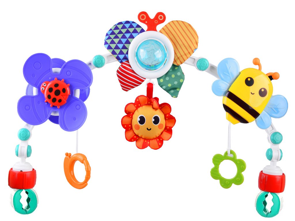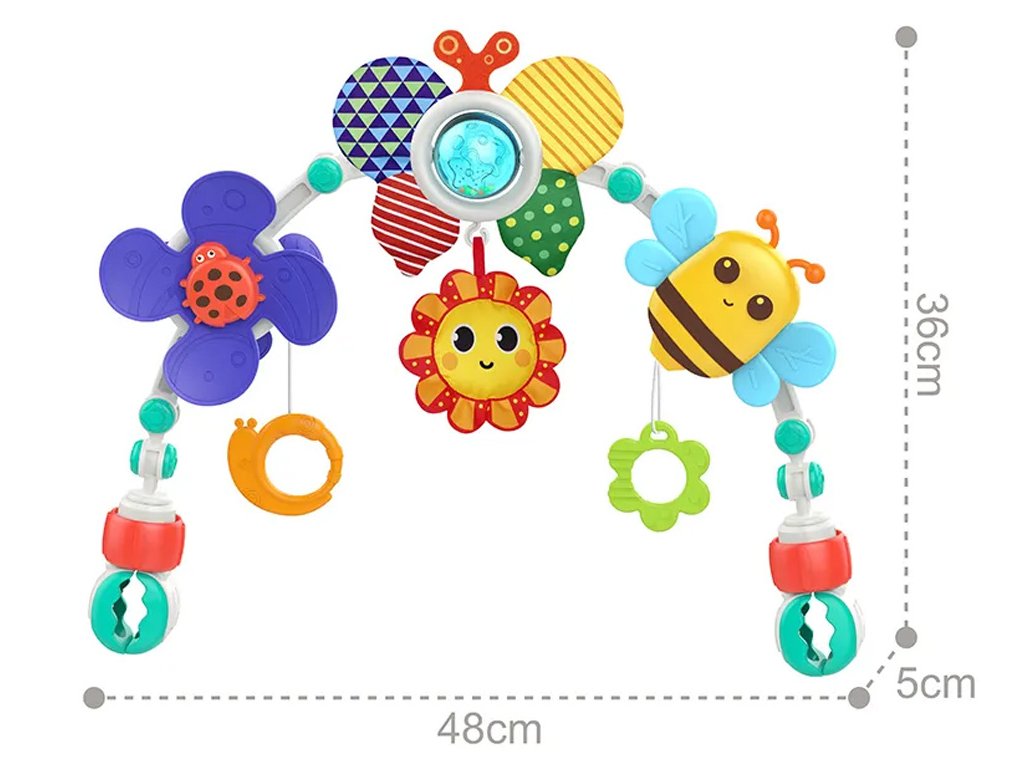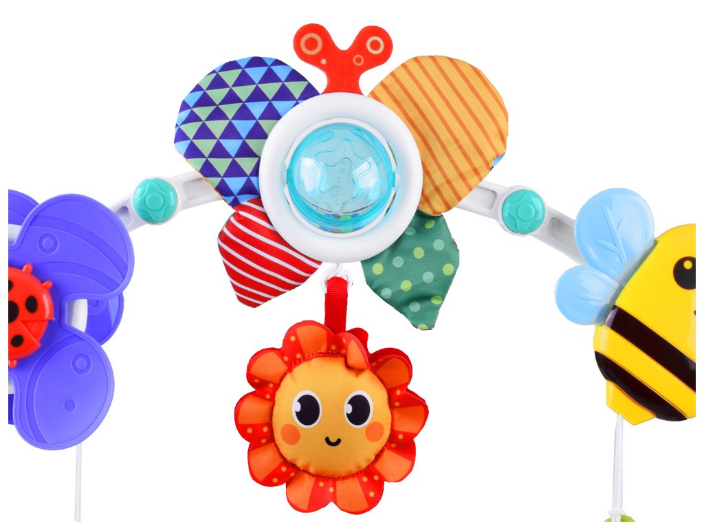 Barevný oblouk na kočárek, autosedačku, lehátko je skvělou volbou pro každé miminko. Tato hračka je velmi jednoduchá na montáž a díky možnosti nastavení sklonu je vhodná pro potřeby každého dítěte. Balíček obsahuje pestrobarevné hračky, které podporují vývoj dítěte tím, že ho povzbuzují k uchopování, tahání, rozvíjejí schopnost soustředění pozornosti a podporují fantazii.