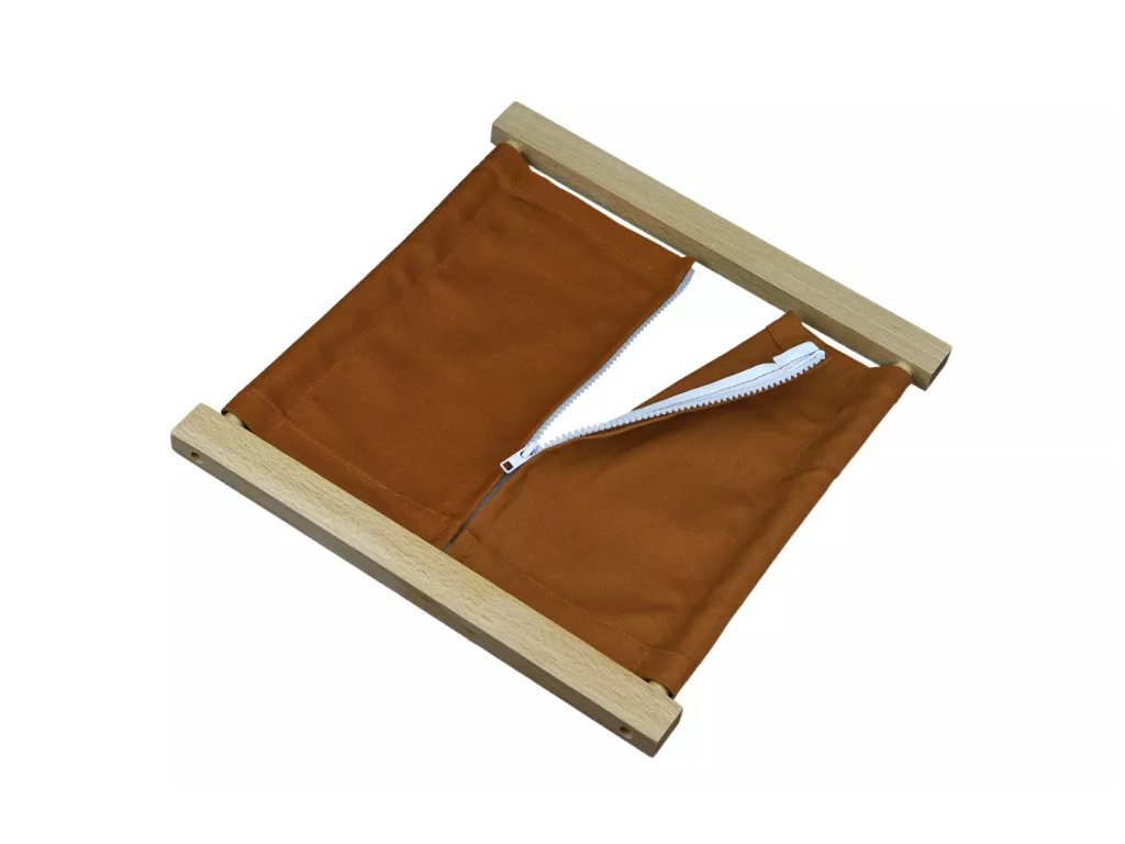 Okvir za zatvaranje s patentnim zatvaračem dio je Montessori pomagala praktičnog života usmjerenih na brigu o sebi. Aktivnost potiče samostalnost djeteta u odijevanju i uvježbava praktične vještine svakodnevnog života.