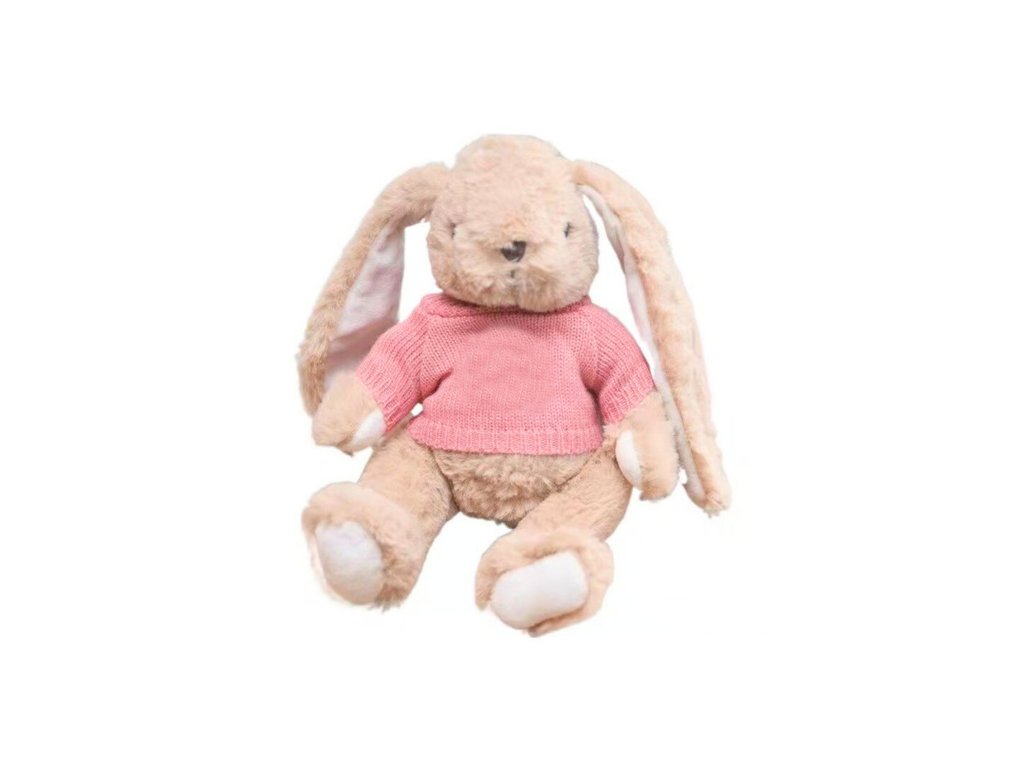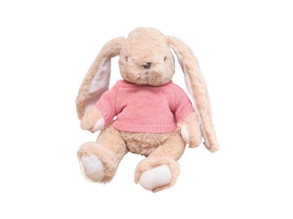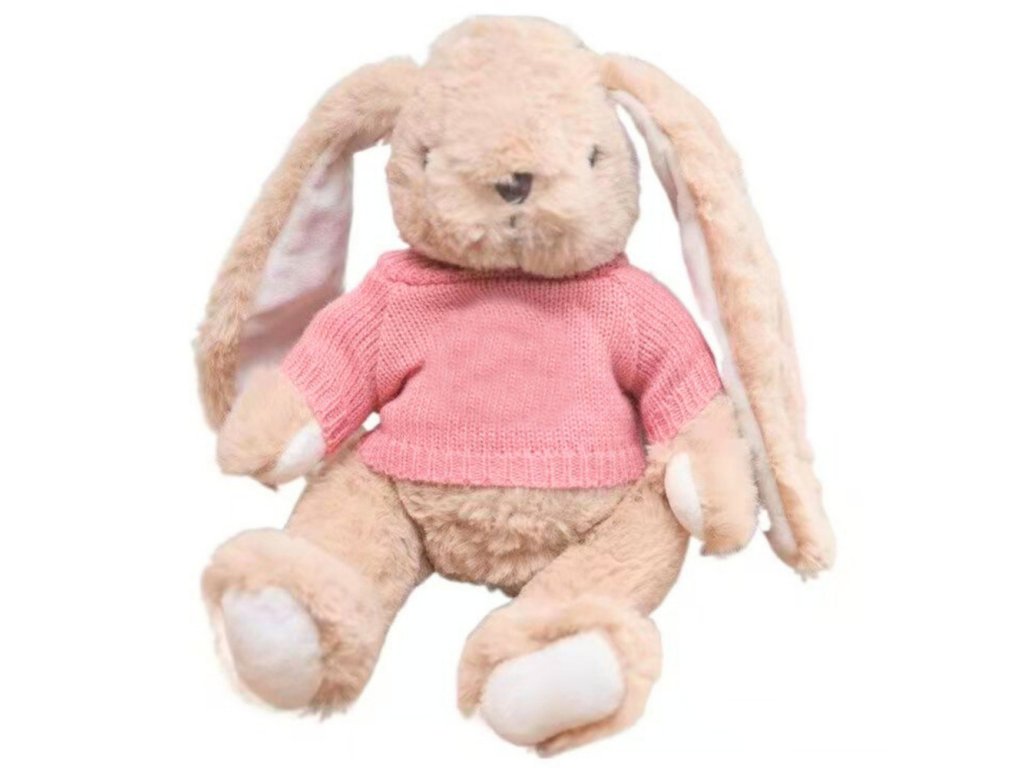 Plišani zeko iznimno je slatka i neobična igračka koja privlači pažnju kako svojim mekanim izgledom, tako i karakterističnim dodatkom – ružičastim džemperićem. Igračka je izrađena od ugodnog na dodir, visokokvalitetnog pliša u toploj bež boji, koja joj daje nježan, prijateljski karakter. Duge, mekane uši, simpatično lice s malim nosićem i prirodno smještene šape daju zeki iznimno topao izgled i odmah pobuđuju simpatije.