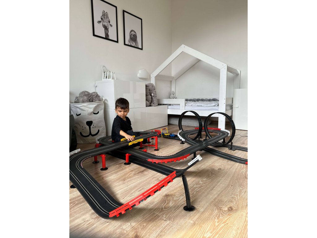 Velika automobilska staza sastoji se od oštrih startova i petlji od 360 stupnjeva. Set uključuje dva autića, dva kontrolera i brojač krugova. Automatsko praćenje ima dva načina rada brzine, sporo i brzo.