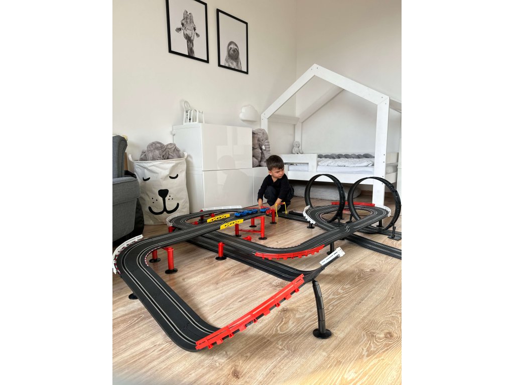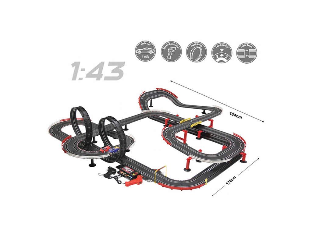 Velika automobilska staza sastoji se od oštrih startova i petlji od 360 stupnjeva. Set uključuje dva autića, dva kontrolera i brojač krugova. Automatsko praćenje ima dva načina rada brzine, sporo i brzo.