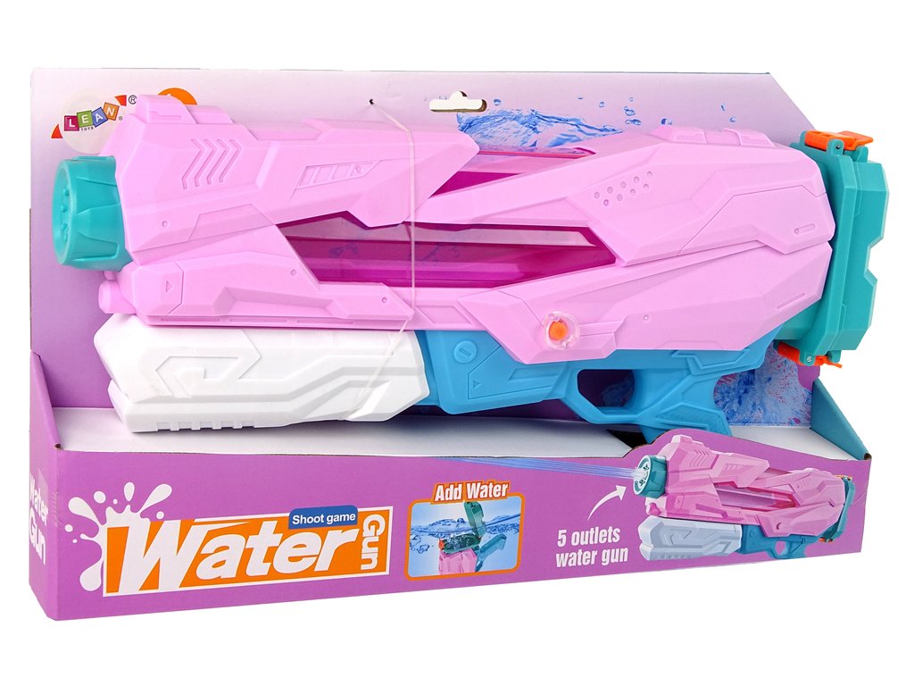 Predstavljena puška na vodu je u ružičastoj boji s plavim detaljima. Na gornjem dijelu puške nalazi se plavi čep, otvorite ga i napunite spremnik do 80% vodom. Kapacitet cijelog spremnika je 800 ml i puška ima doseg od 8 m.
