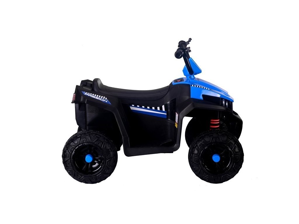 Plavo-crni ekvivalent pravog quada opremljen je LED prednjim svjetlima koja ne samo da povećavaju razinu sigurnosti igre nakon sumraka, već također olakšavaju vidljivost i izbjegavanje svih prepreka na putu malog vozača.
