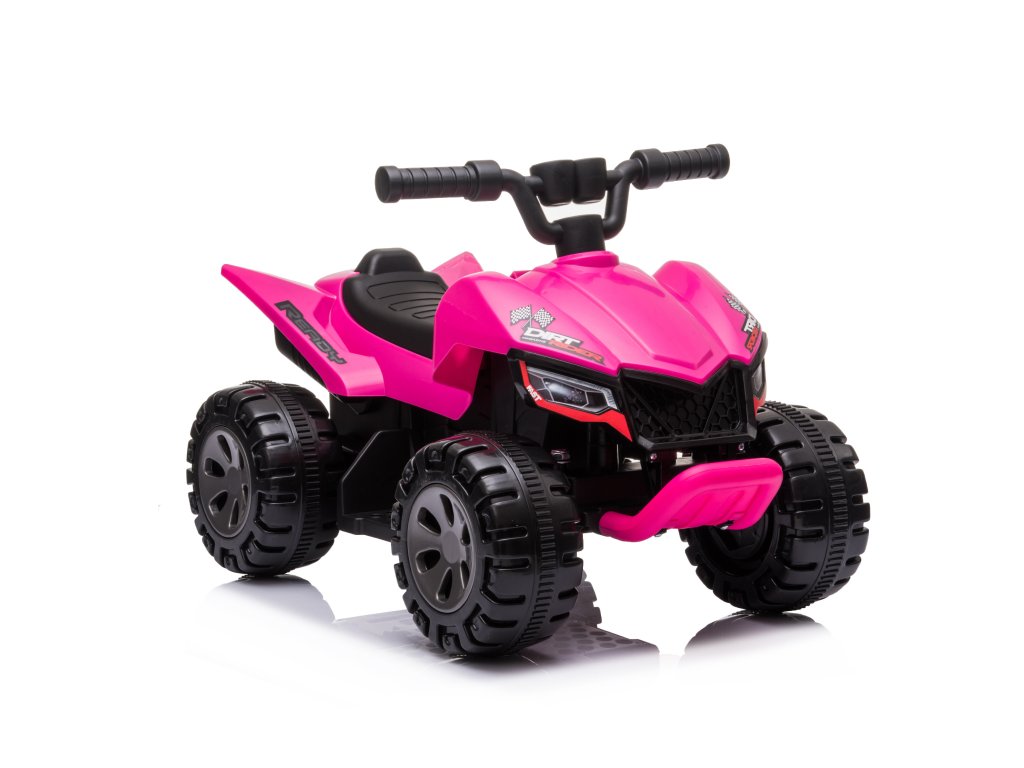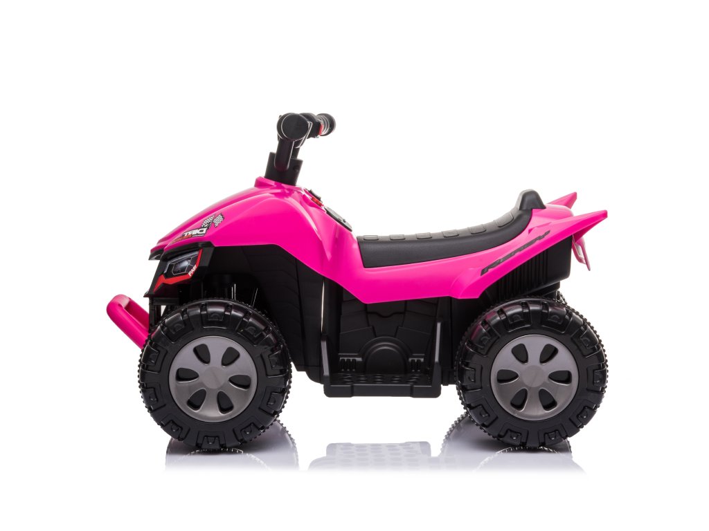 Dječji električni quad 'Quad na akumulator The Fastest rozi' idealan je za mlade vozače s nosivosti do 30 kg. Upravlja se pomoću gumba na ručki.