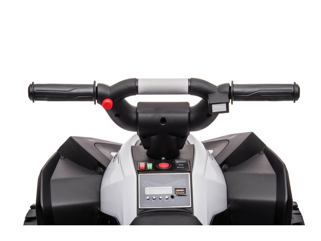 Quad ima postupan start, u terenu se kreće brzinom od 3-3,5 km/h, a u vožnju roditelji mogu intervenirati u bilo kojem trenutku pomoću daljinskog upravljača. Udobnost osiguravaju plastično sjedalo i plastični kotači.
