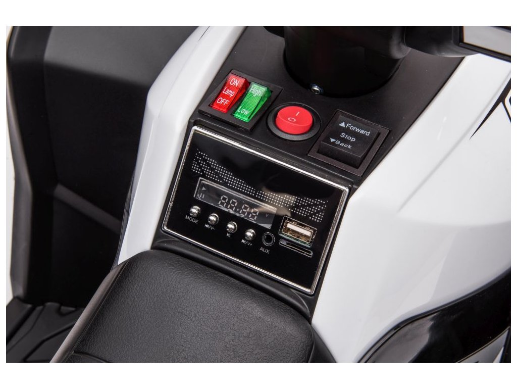 Dječji električni quad XC-sport idealno je rješenje i za zahtjevnije vozače. Opremljen je daljinskim upravljačem s sigurnosnim gumbom Stop, koji odmah zaustavlja vozilo i isključuje sve njegove funkcije. Prilikom pokretanja čut ćete zvukove motora, a vožnju možete učiniti ugodnijom slušanjem glazbe putem bogato opremljenog glazbenog panela.Quad ima dva motora snage 45W i bateriju kapaciteta 12V 7Ah.