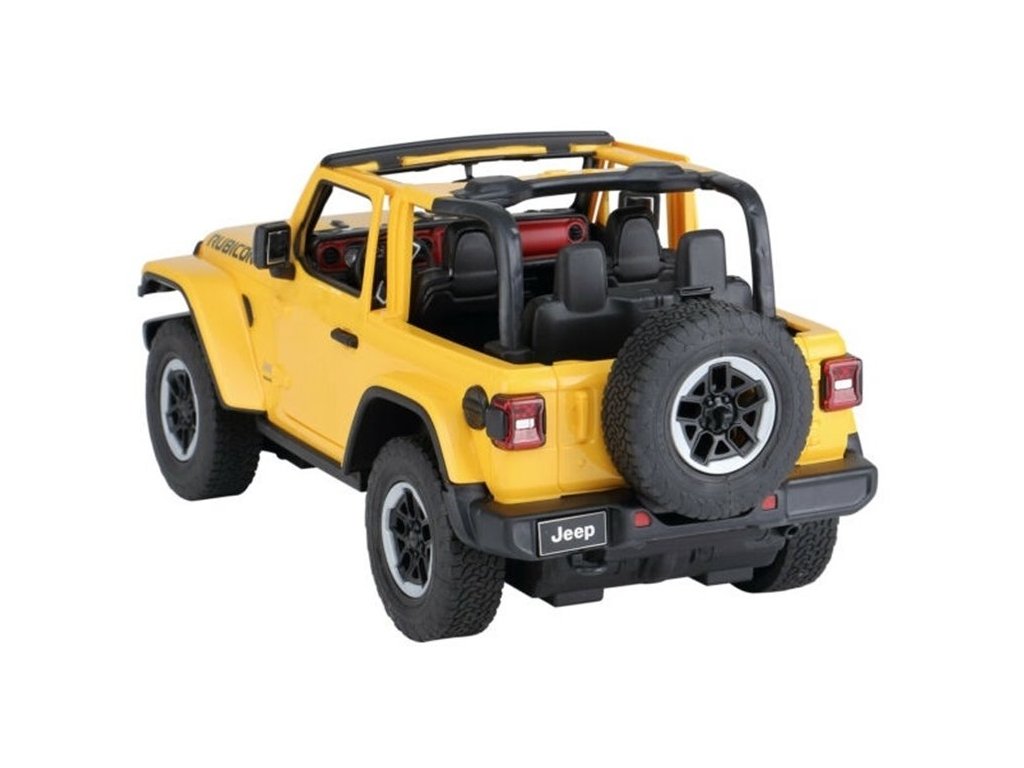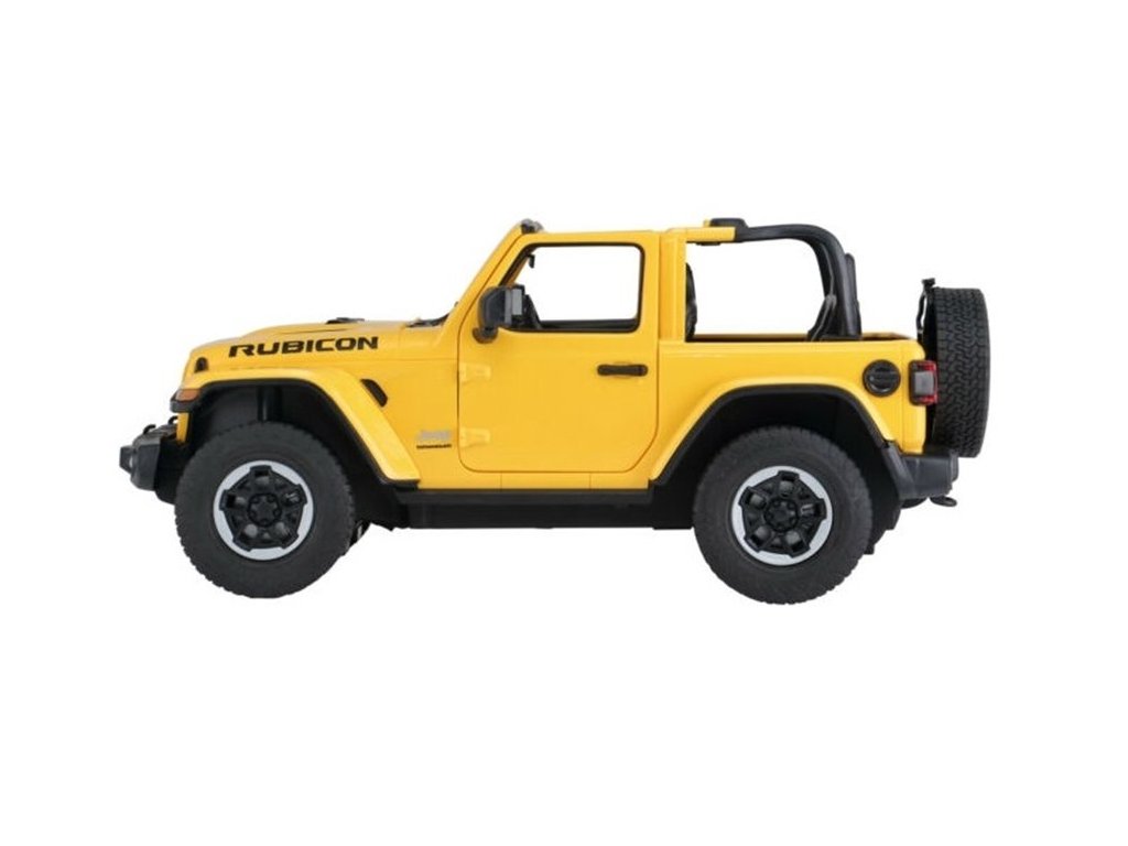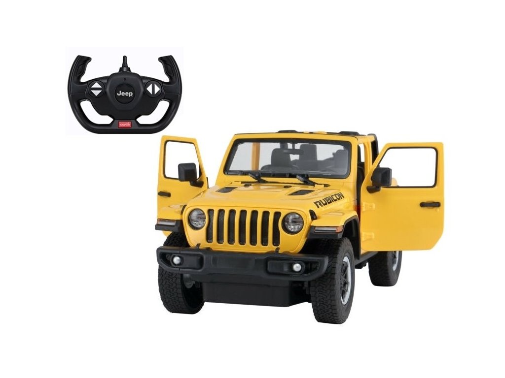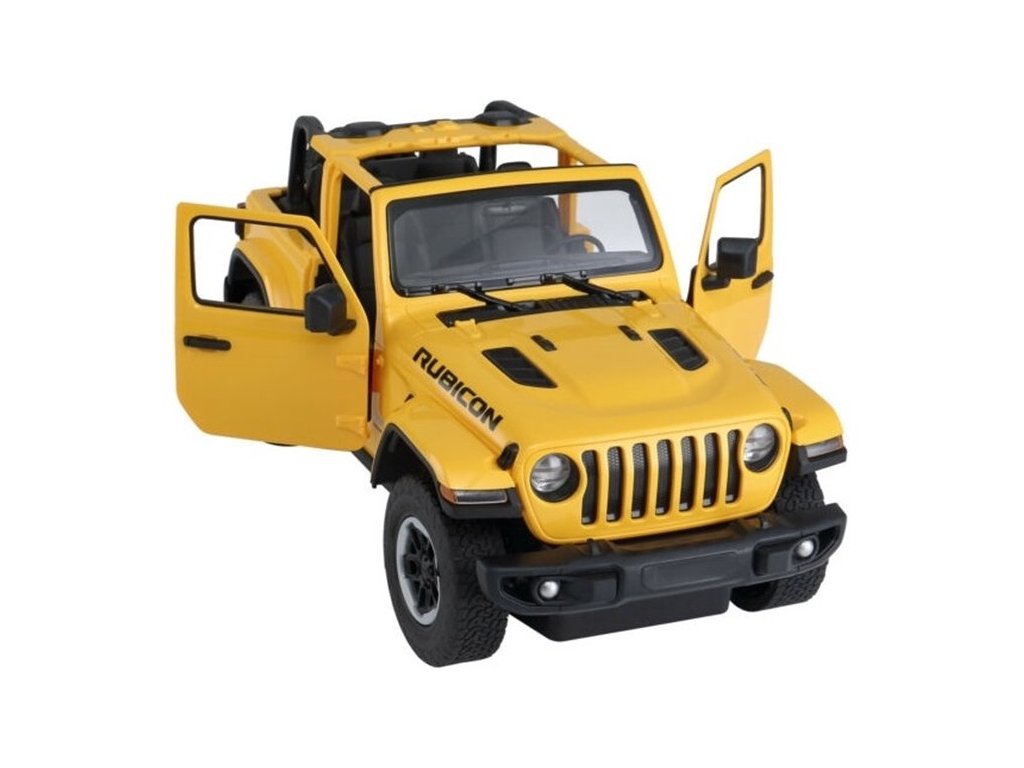 Žuti automobil na daljinsko upravljanje Jeep Wrangler Rubicon autentična je replika u omjeru 1:14. Auto se pomiče naprijed, nazad, okreće i zaustavlja pomoću daljinskog upravljača. Zahvaljujući svom terenskom karakteru, može se koristiti i u zatvorenom i na otvorenom. Svjetla na vozilu se pale kada je auto upaljen i u pokretu. Vrata vozila se mogu otvoriti ručno, unutrašnjost i šasija dizajnirani su s velikom pažnjom kako bi odgovarali originalnom vozilu. Jeepom na daljinsko upravljanje upravlja se pomoću radio upravljača i postiže brzinu od 7 kilometara na sat. Regulator ima domet od nekoliko desetaka metara i za razliku od infracrvenih kontrolera, može se bez problema koristiti vani na punom suncu.