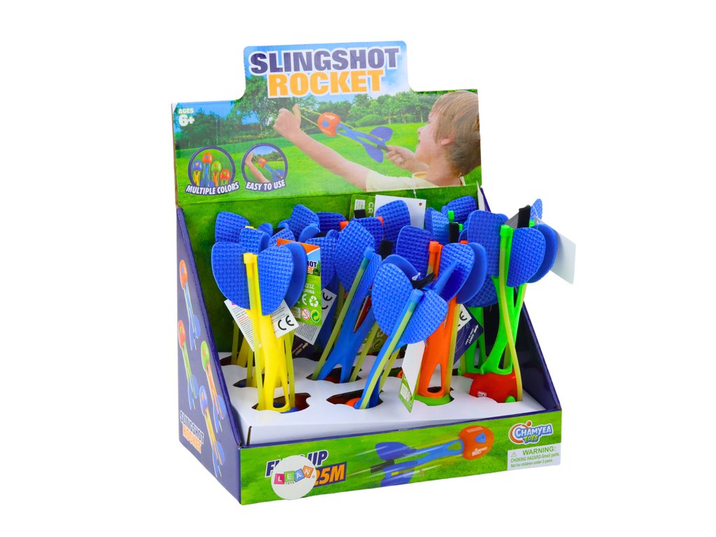 Raketa iz praćke je inovativna igračka koja potiče igru na svježem zraku. Njegove male dimenzije i kompaktan dizajn čine ga idealnim suputnikom za svako putovanje ili piknik. Zahvaljujući laganoj konstrukciji i posebno dizajniranoj praćki, raketa može doseći nevjerojatne udaljenosti - do 25 metara!
