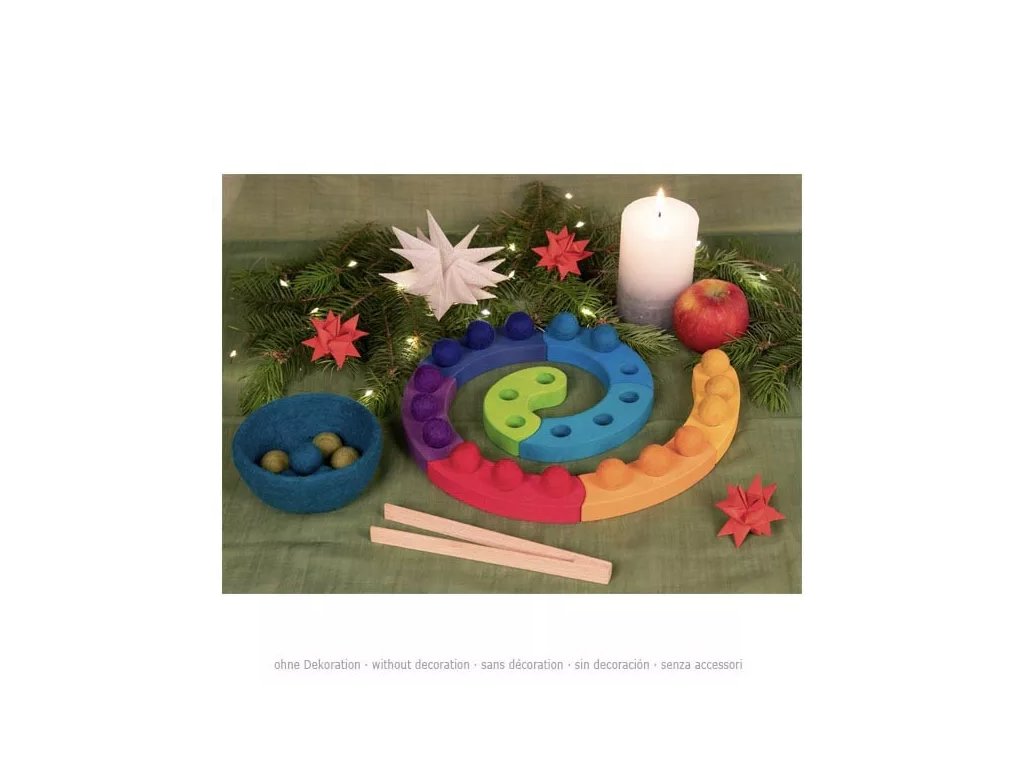 Šarena spirala od osam dijelova sastavlja se u oblik u čije se udubine postavljaju vunene kuglice od filca. Za manipulaciju služe drvene kliješta koja potiču preciznost i fine pokrete ruke. Igra se može igrati na različite načine, na primjer razvrstavanjem boja i brojanjem.