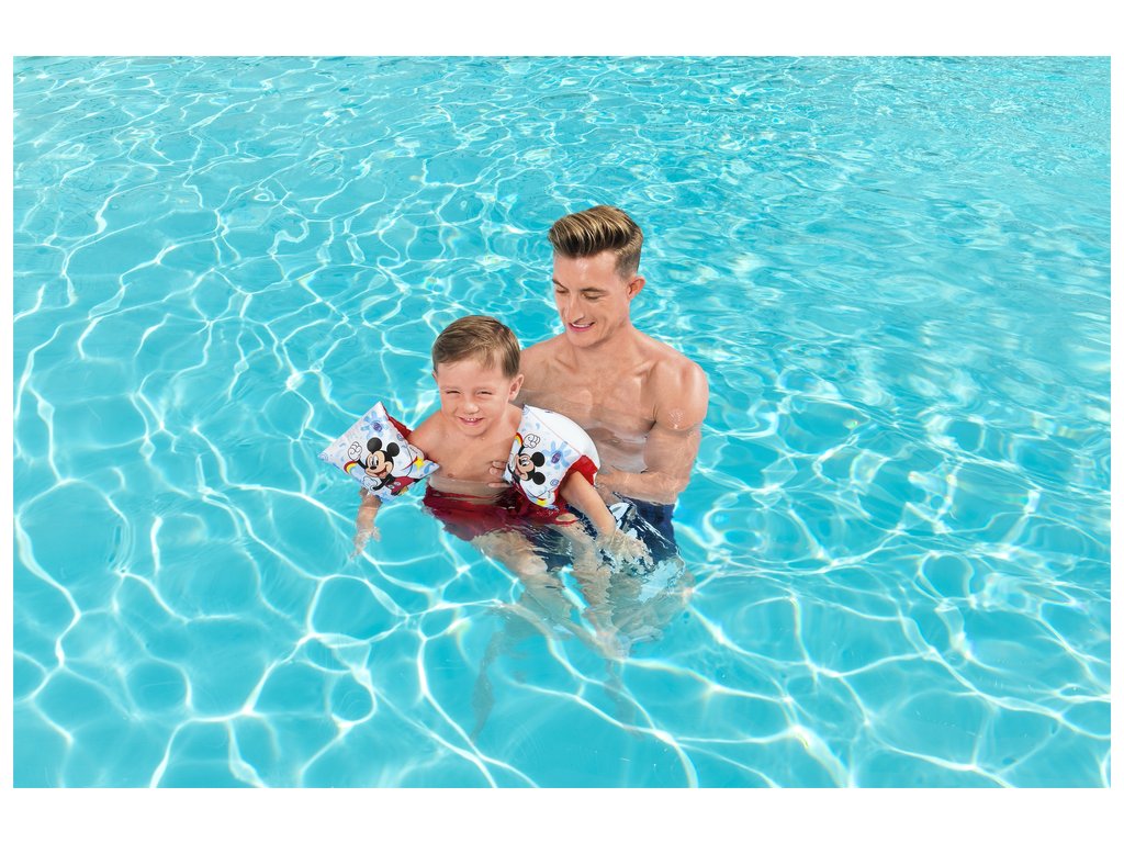 Rukavići na napuhavanje za plivanje Mickey Mouse Bestway pomoći će vašem djetetu pri prvim pokušajima kontakta s vodom. Ovi rukavići na napuhavanje dolaze kao idealno rješenje za početno učenje vašeg djeteta. Njihove zanimljive boje i uzorci zasigurno će potaknuti svu malenu djecu na igru i aktivno provođenje slobodnog vremena. Uz njih, možete biti sigurni da je vaše dijete sigurno u vodi. Rukavići su izrađeni od izdržljivog materijala otpornog na oštećenja i brzo se napuhuju. Kada su sklopljeni, ne zauzimaju mnogo prostora, tako da ih uvijek možete ponijeti sa sobom na vodne izlete.