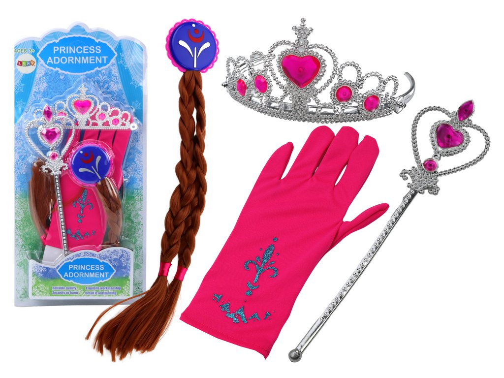 Sada dodaci za malu princezu – štapić, rukavice, kruna, pletenice