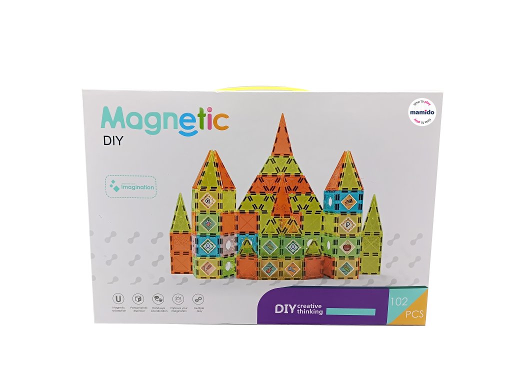 Kreativna magnetska slagalica sastoji se od 102 šarene pločice veličine 5,5 cm, što je izvrstan izbor za djecu koja vole graditi, svjetlosne efekte i kombinirati oblike. Manja veličina dijelova idealna je za detaljne građevine, čvrste konstrukcije i izradu manjih dvoraca, kuća i tornjeva. Prozirni dijelovi u boji stvaraju prekrasne šarene odsjaje i zahvaljujući jakim magnetima uvijek dobro drže.