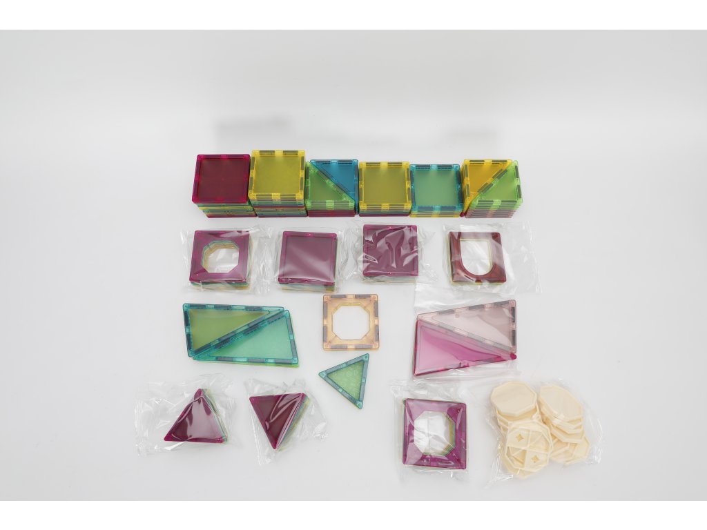 Čarobni set od 118 magnetskih pločica veličine 7,5 cm otvara svijet mašte u kojem djeca mogu graditi dvorce, kućice, tornjeve i vlastite šarene svjetove. Prozirni dijelovi stvaraju prekrasne svjetlosne efekte i savršeno se drže zahvaljujući jakim magnetima. Set je idealan za male graditelje koji vole kreativno kombinirati oblike.